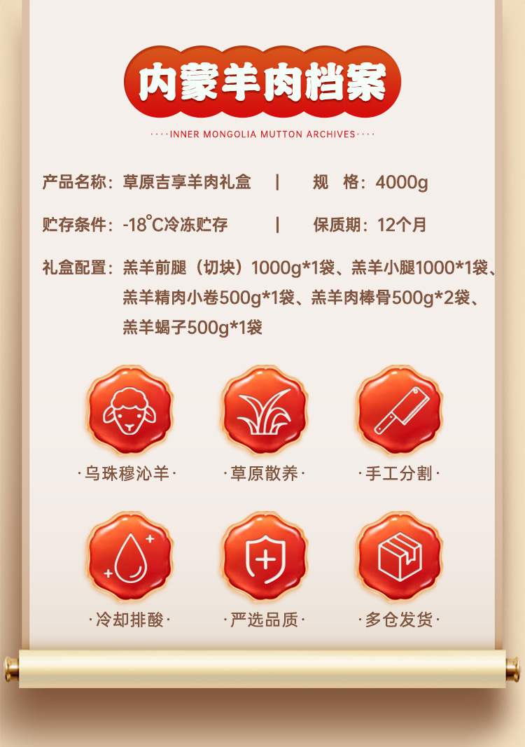 代发自营正牧26草原吉享羊肉礼盒4000g