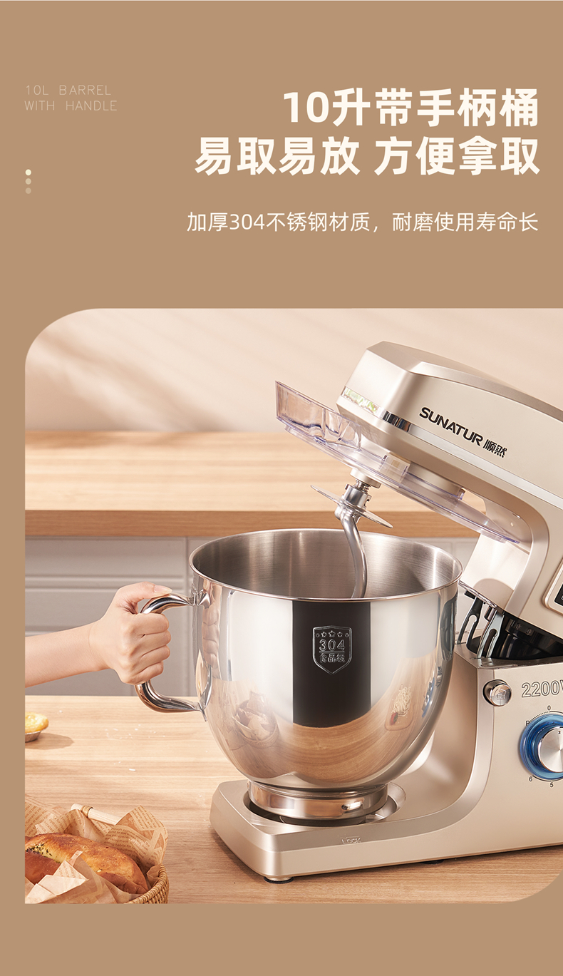 源头顺然SUNATUR 10升厨师机家商用大容量和面揉面一体机 SM-15110NL