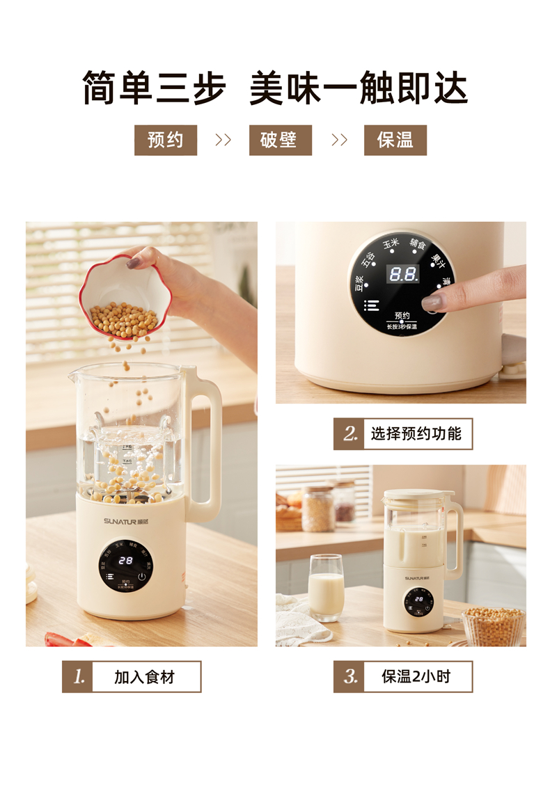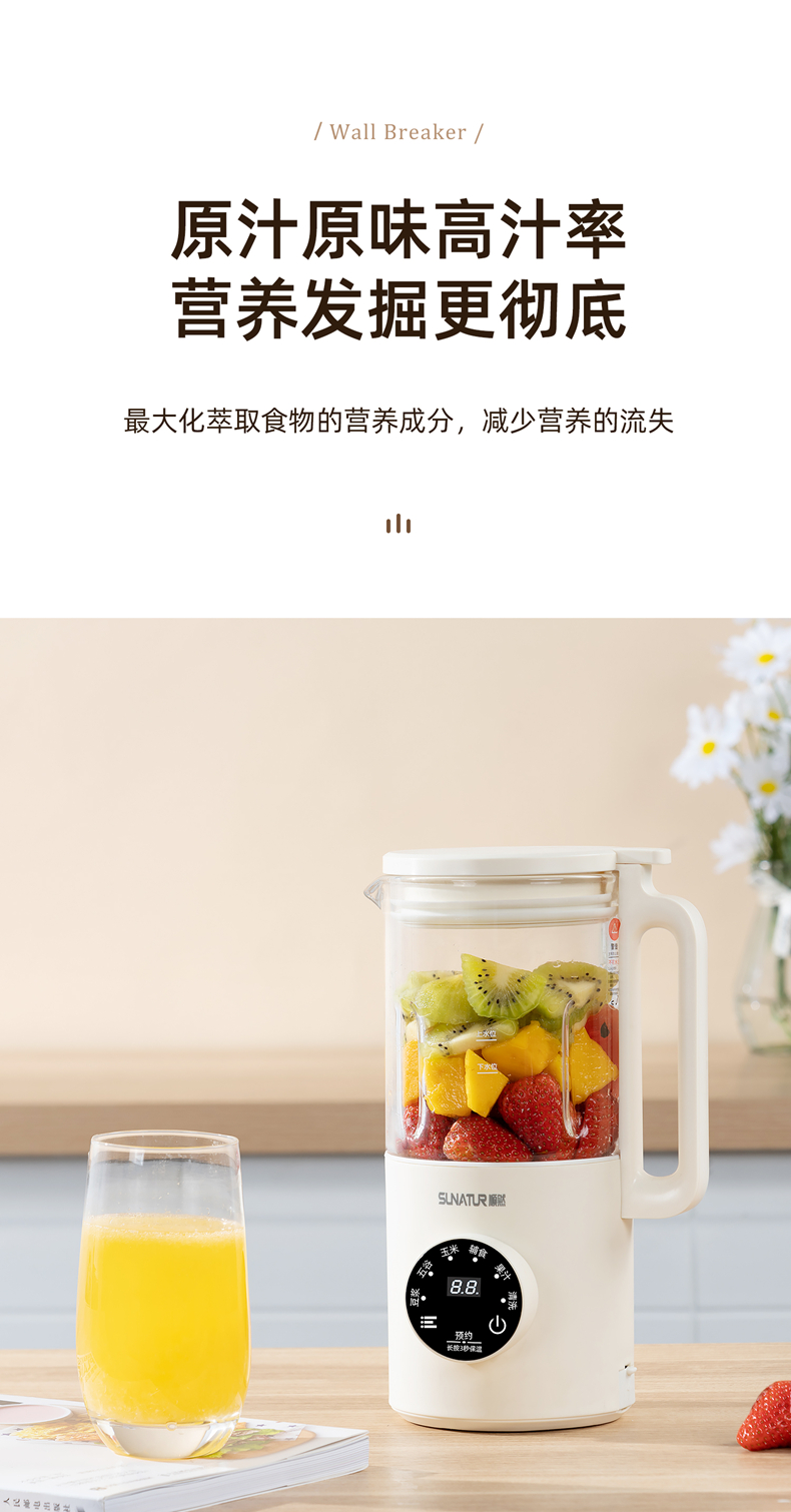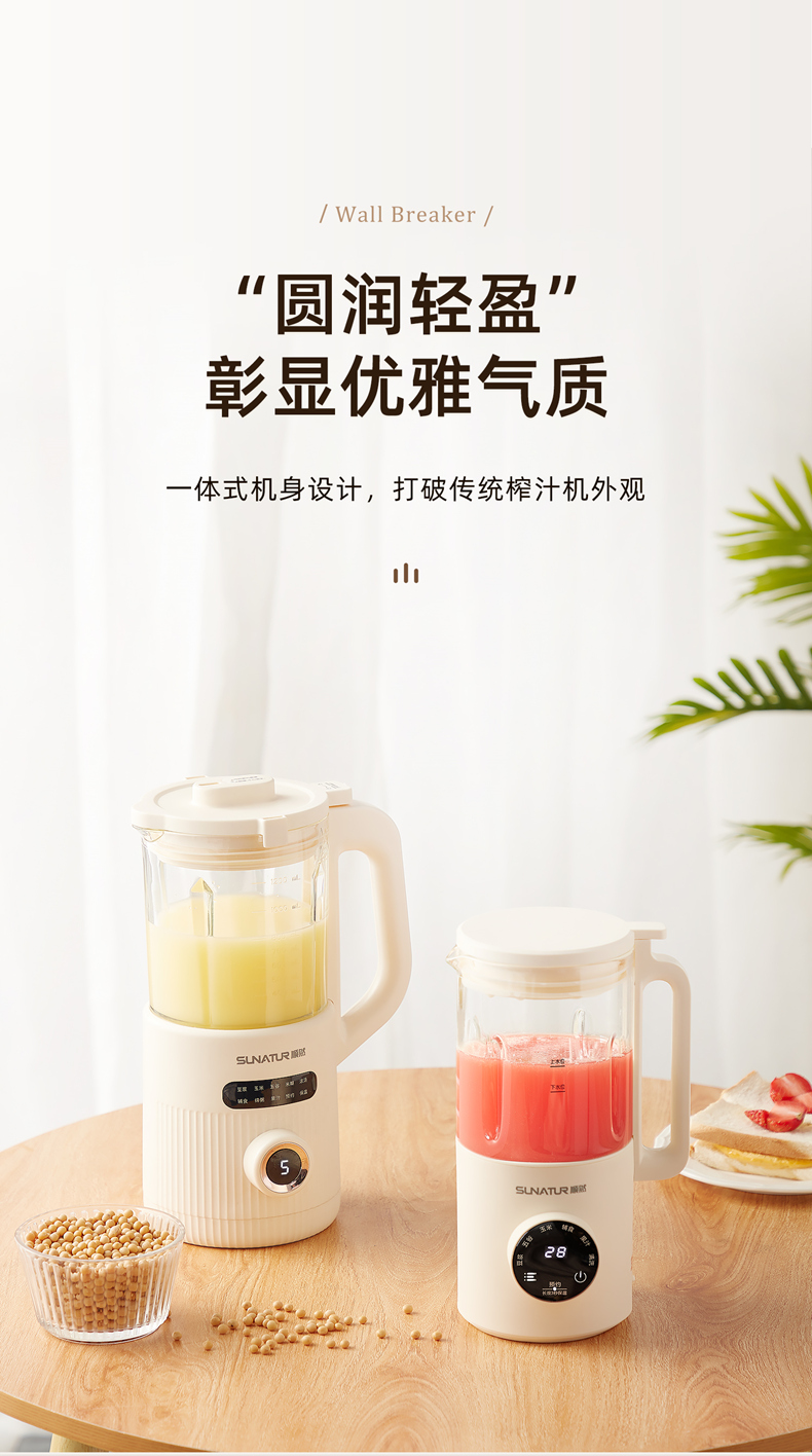 荐源头《顺然/SUNATUR》 HB-D605K 破壁豆浆机600ML-陶瓷釉款