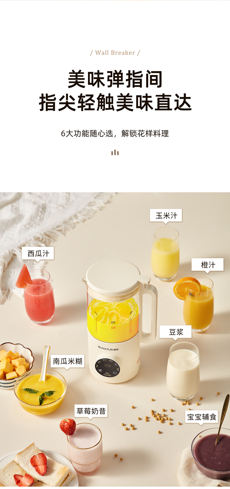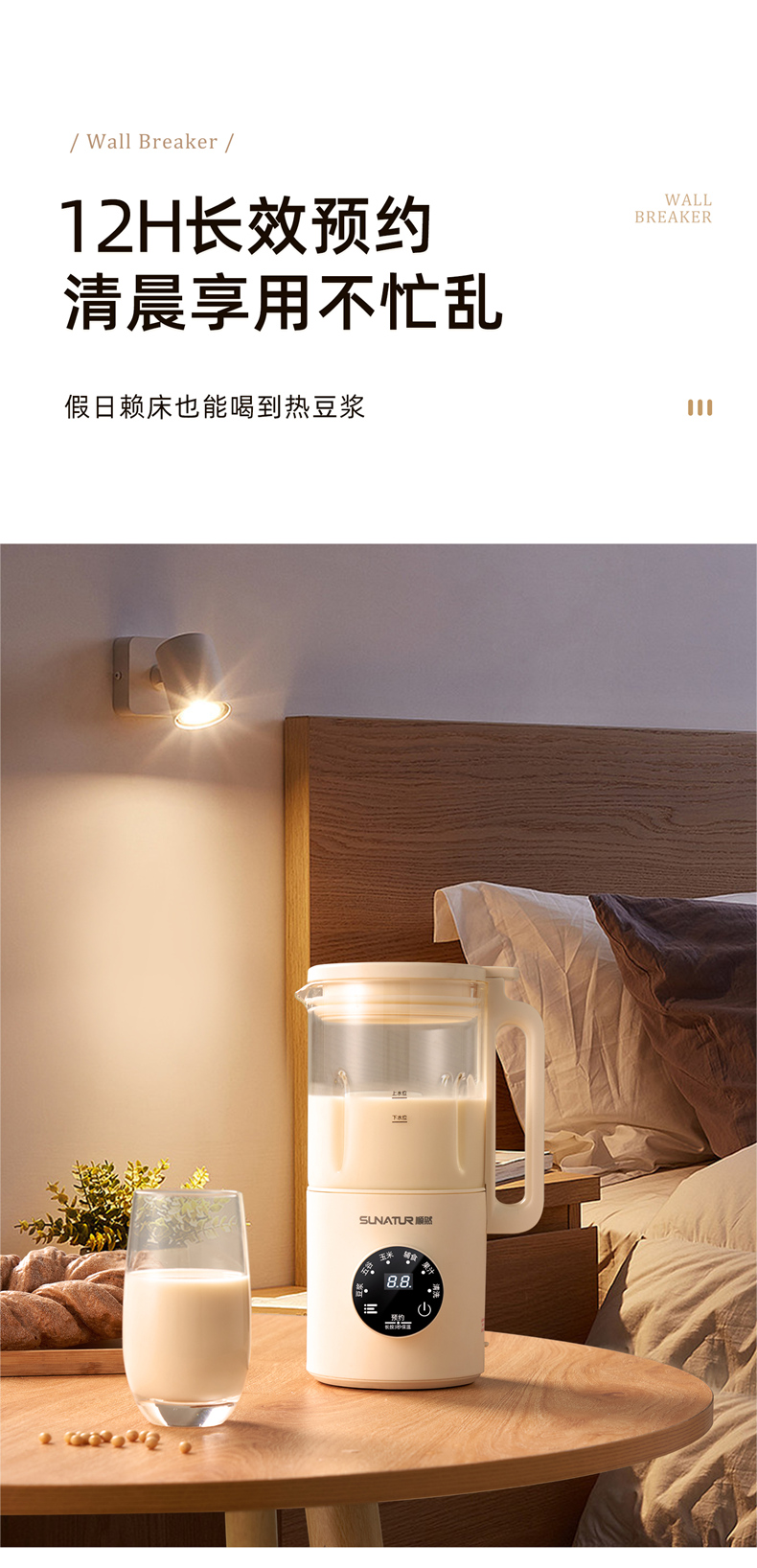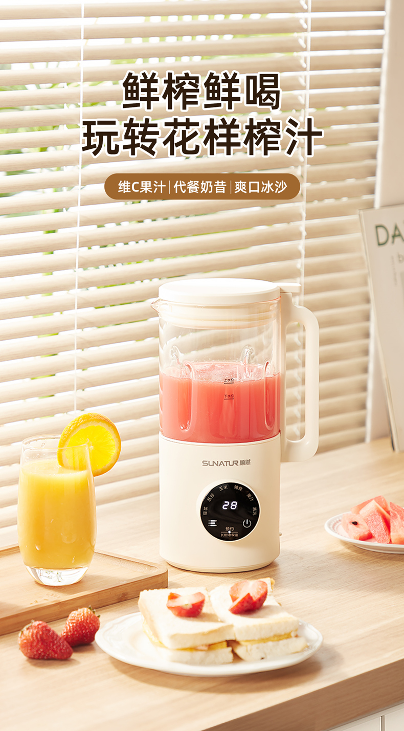 荐源头《顺然/SUNATUR》 HB-D605K 破壁豆浆机600ML-陶瓷釉款
