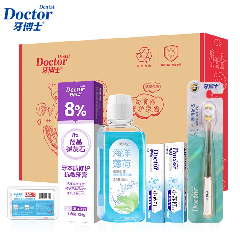 代发牙博士羟基磷灰石牙本质修护抗敏牙膏礼盒(牙刷颜色随机发)