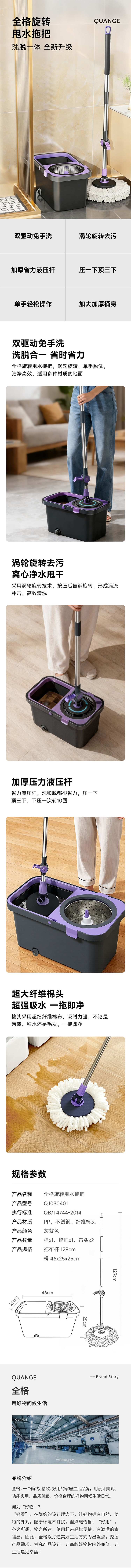 荐代发全格 旋转甩水拖把 QJ030401