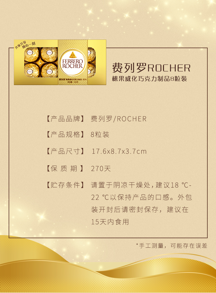当前位置:首页 > 食品饮料 > 休闲食品 > 巧克力/糖果 > 费列罗榛果威化巧克力制品8粒纸盒装