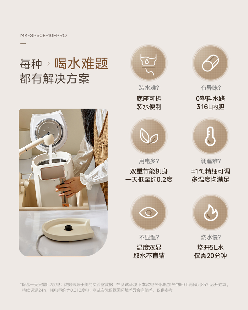 代发美的 电热水瓶5L智能恒温电水壶316不锈钢0塑料水路除氯多段控温烧水壶MK-SP50E-10FPro