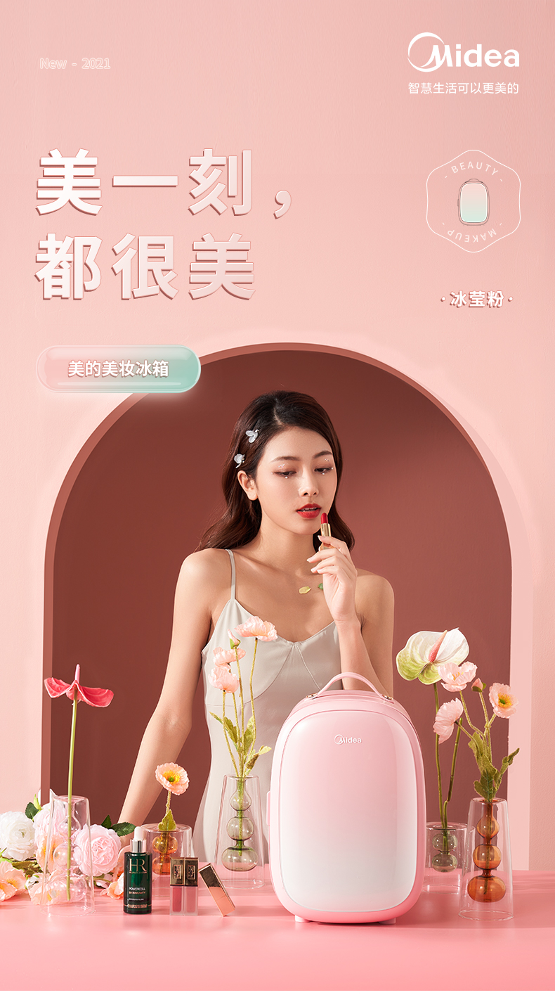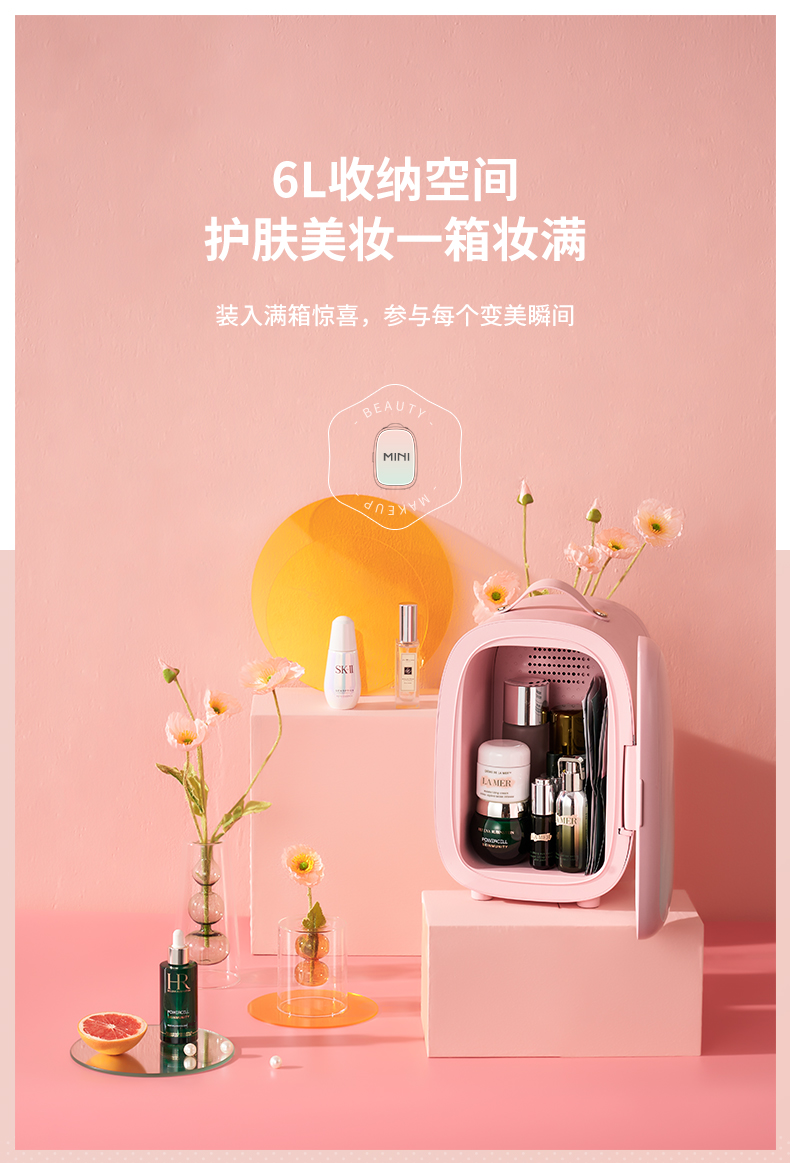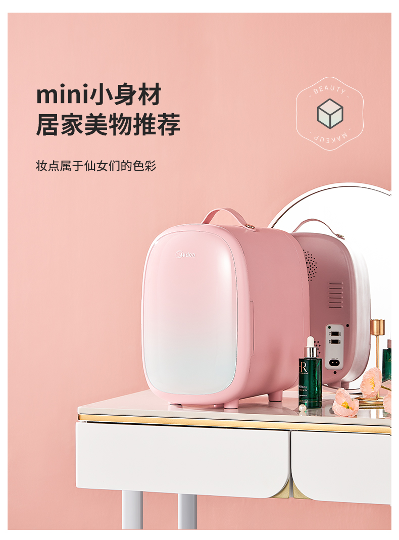 代发美的 家用车载迷你小型化妆品专用办公室桌台面小冰柜 粉色 DC-6M(ZG)