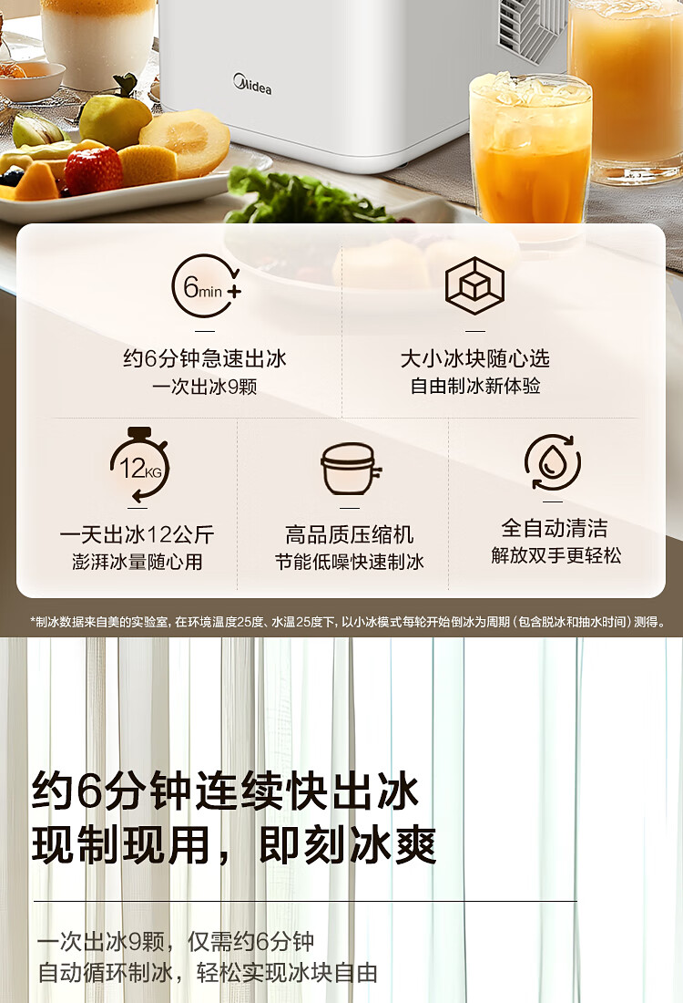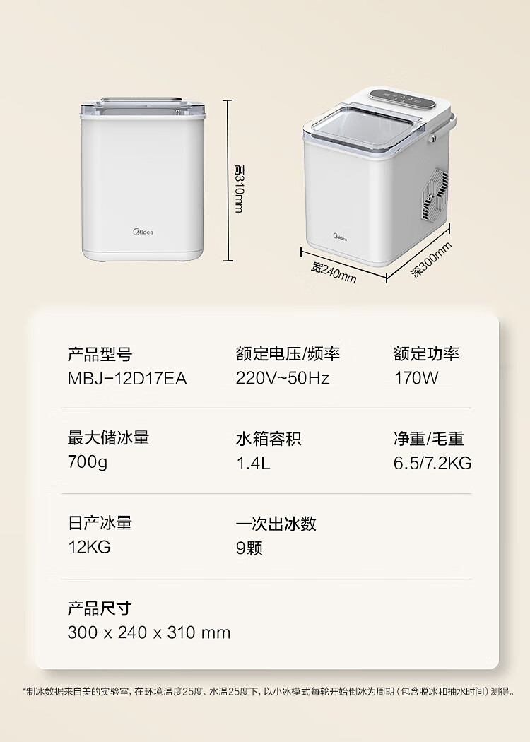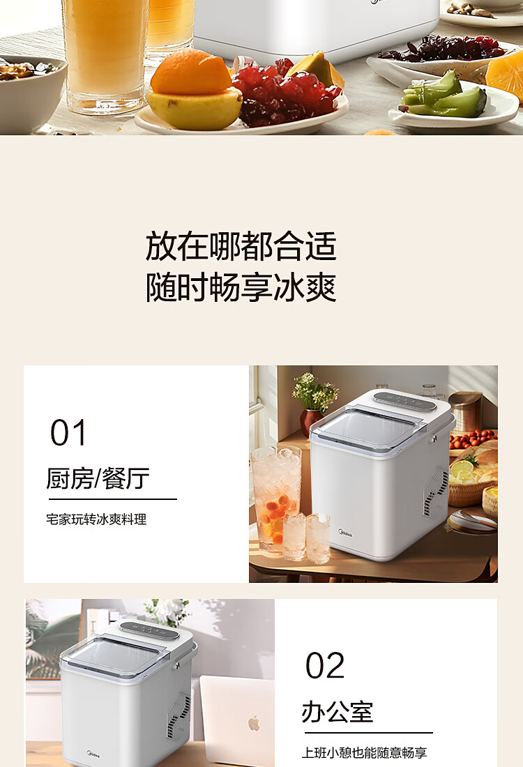 代发美的家用小型迷你宿舍办公室子弹冰冰块制冰器MBJ-12D17EA-不带UV灯