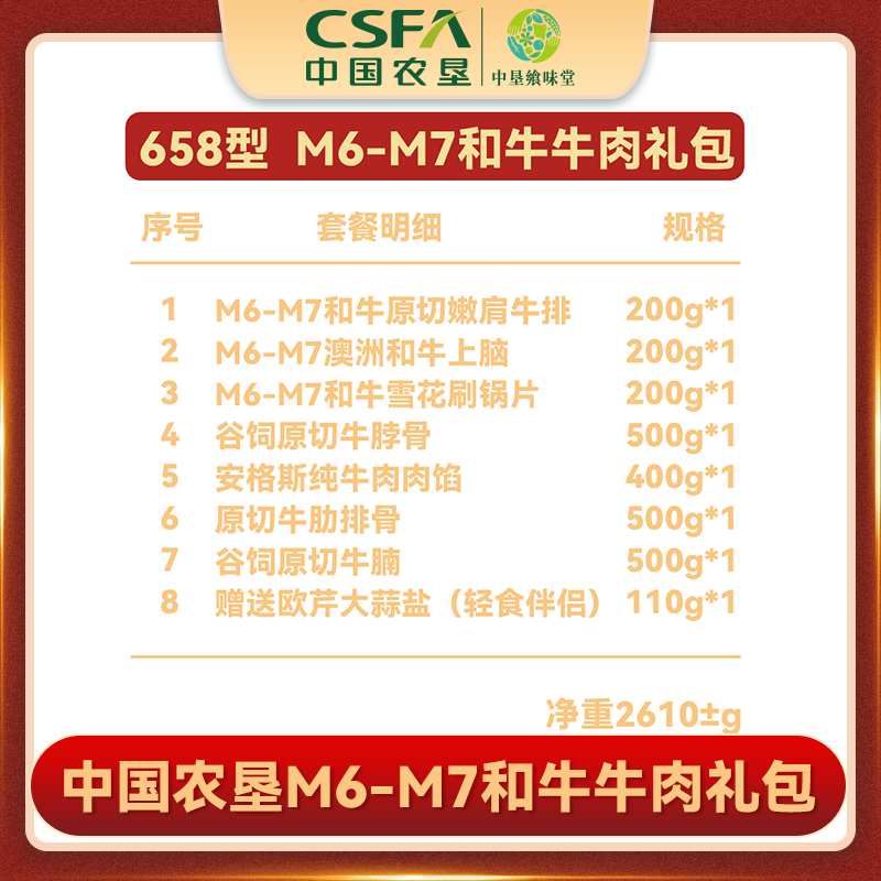 代发中国农垦M6-M7和牛牛肉礼包658型2610g