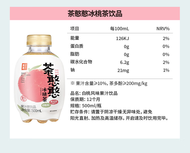 代发自营果子熟了果汁茶憨憨多口味混合饮料 500ml*12瓶