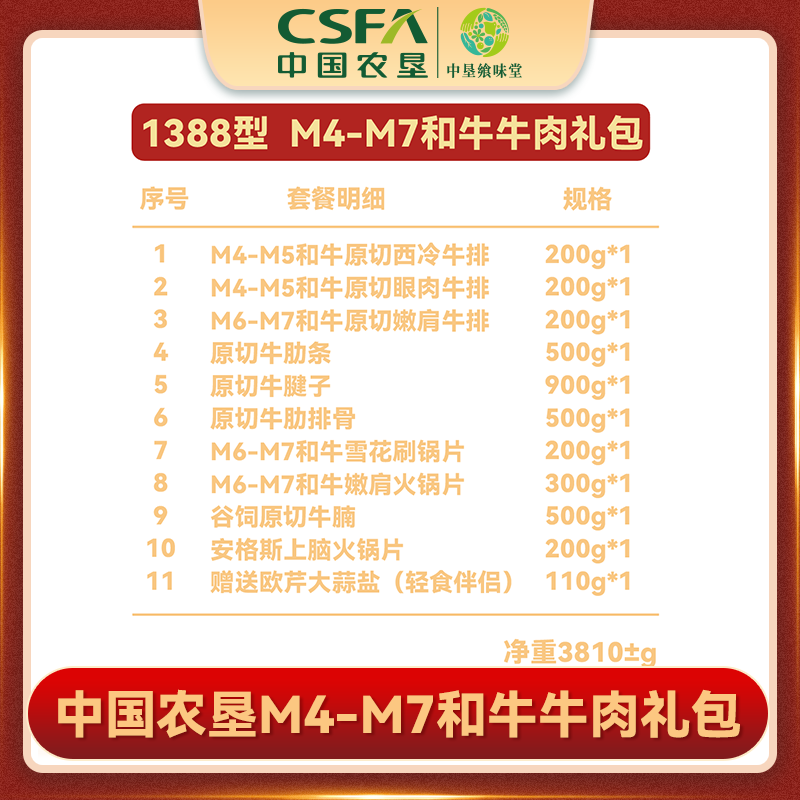 代发中国农垦M4-M7和牛牛肉礼包1388型3810g