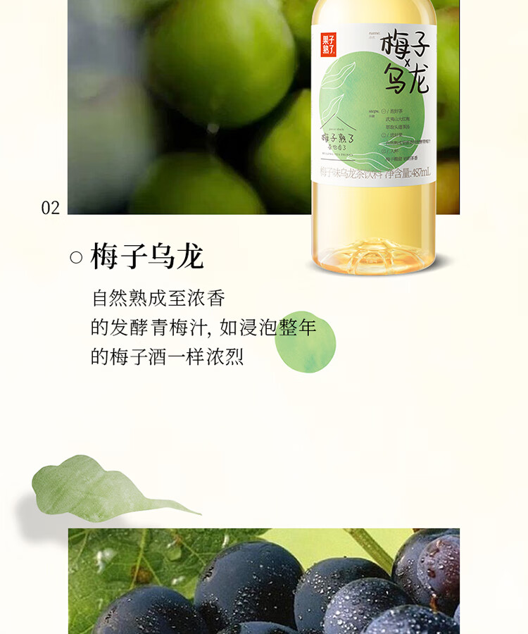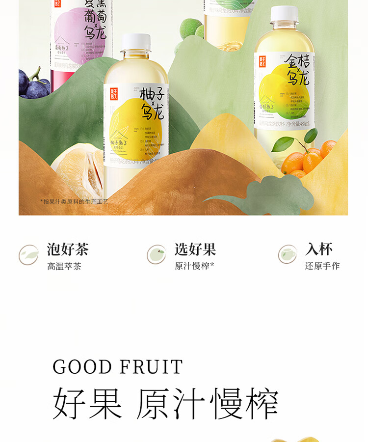 多口味可选:果子熟了梅子乌龙茶饮料487ml*15瓶/果子熟了柚子乌龙茶饮料487ml*15瓶