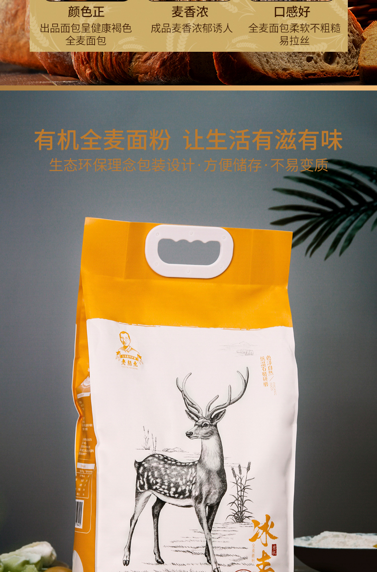 代发老关东有机石磨冰麦全麦面粉-瑞鹿5kg