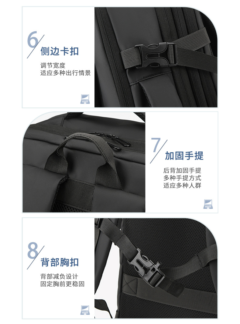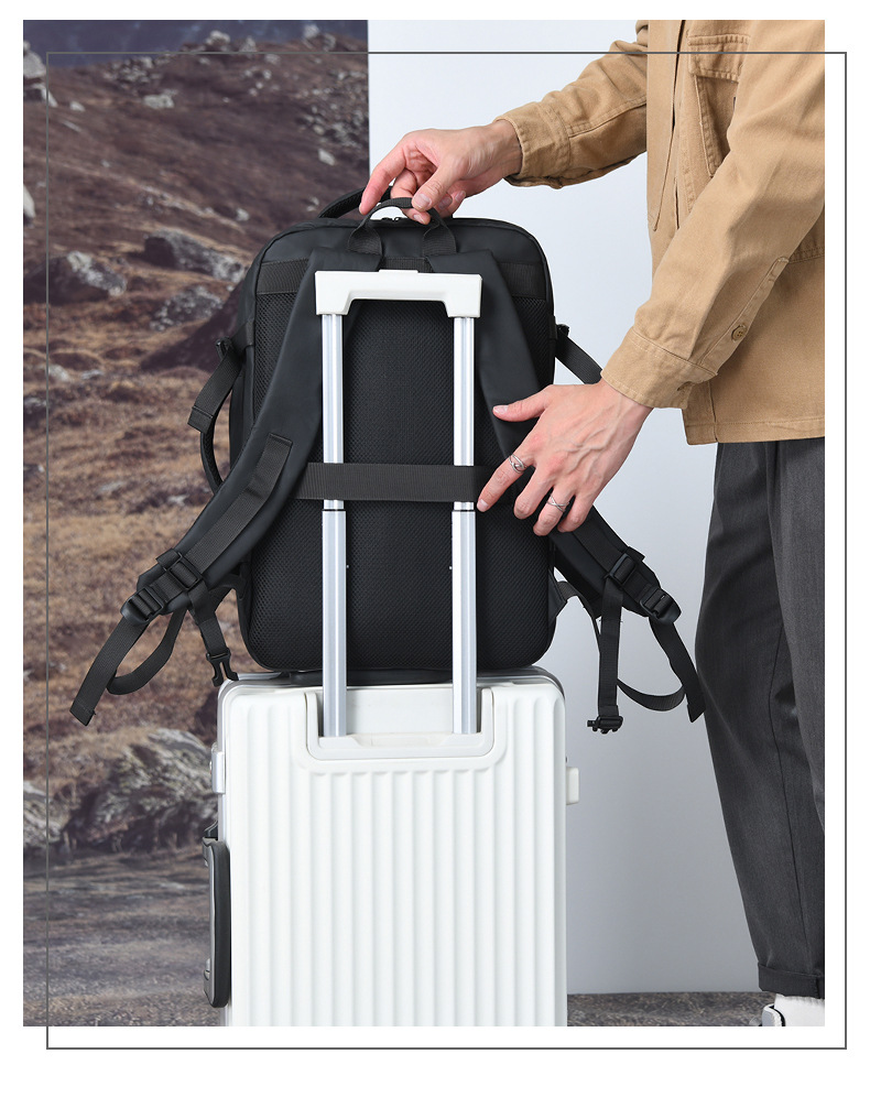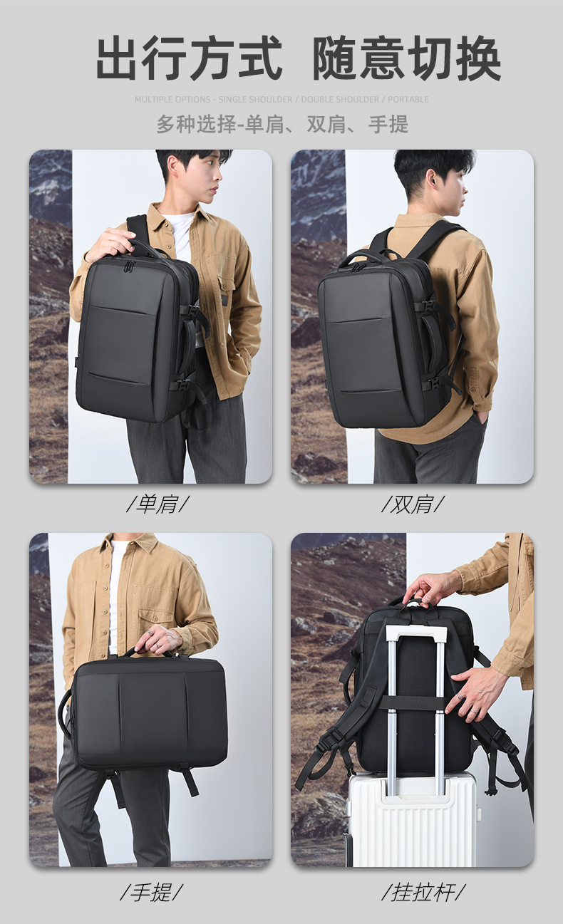 代发贝唯思时尚休闲双肩背包旅行电脑书包男士背包可扩展大容量BWS703-X52 黑色