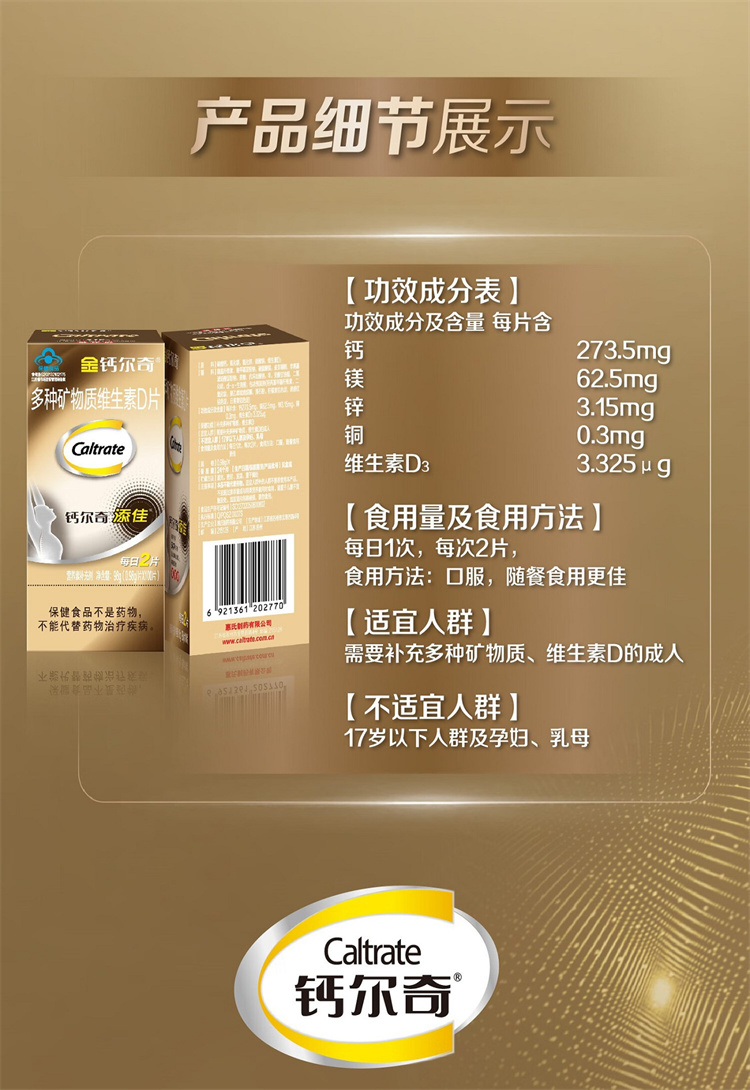 荐代发金钙尔奇钙镁锌铜维生素D片100片