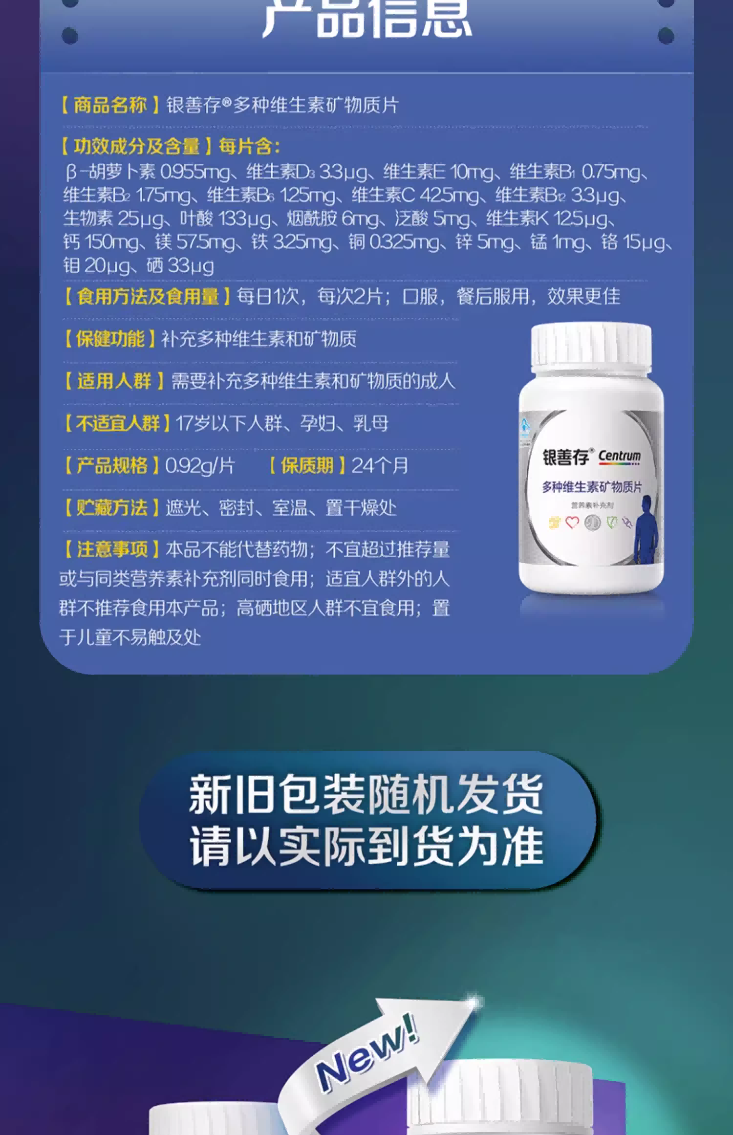 代发银善存 多种维生素矿物质片 160片(男)