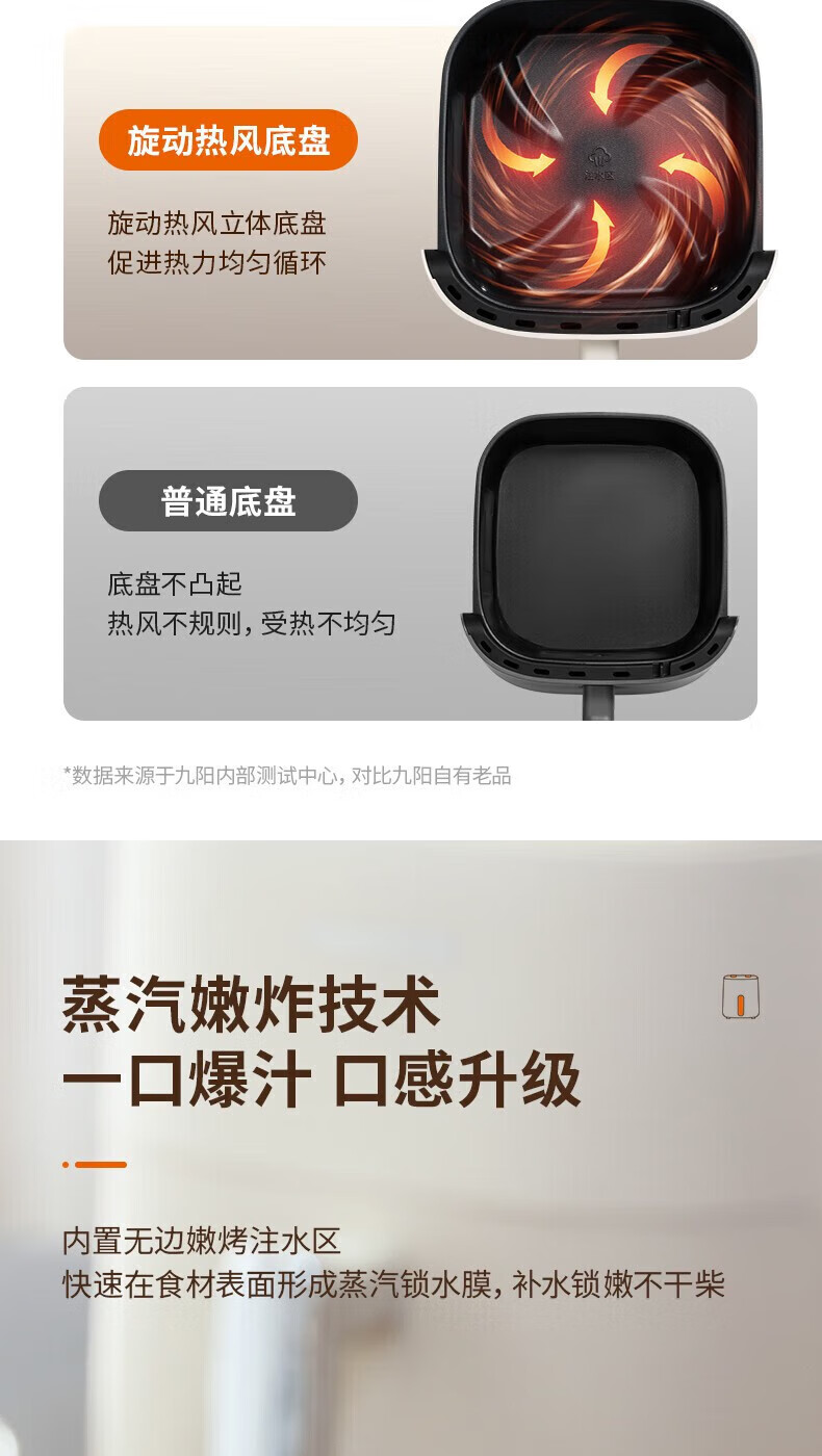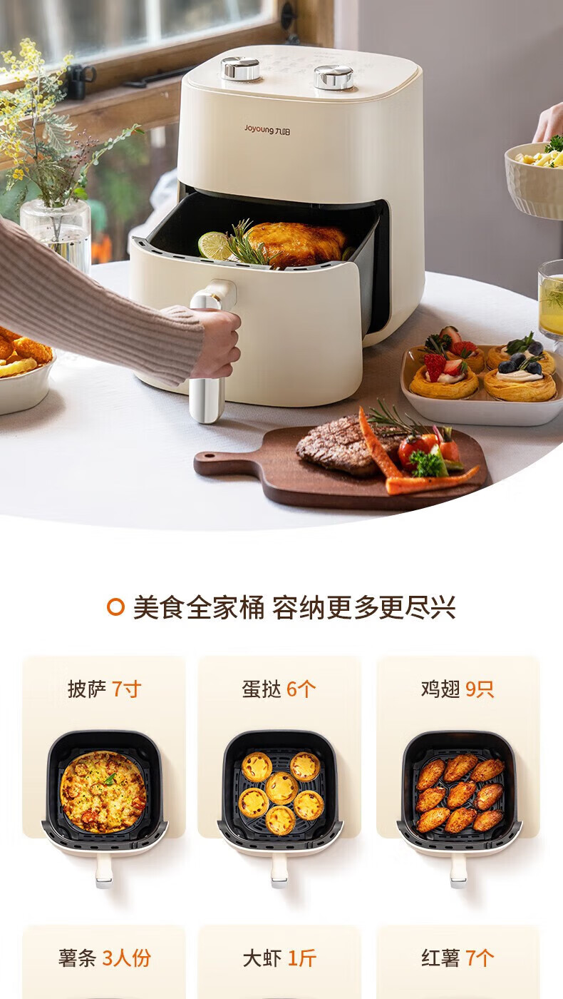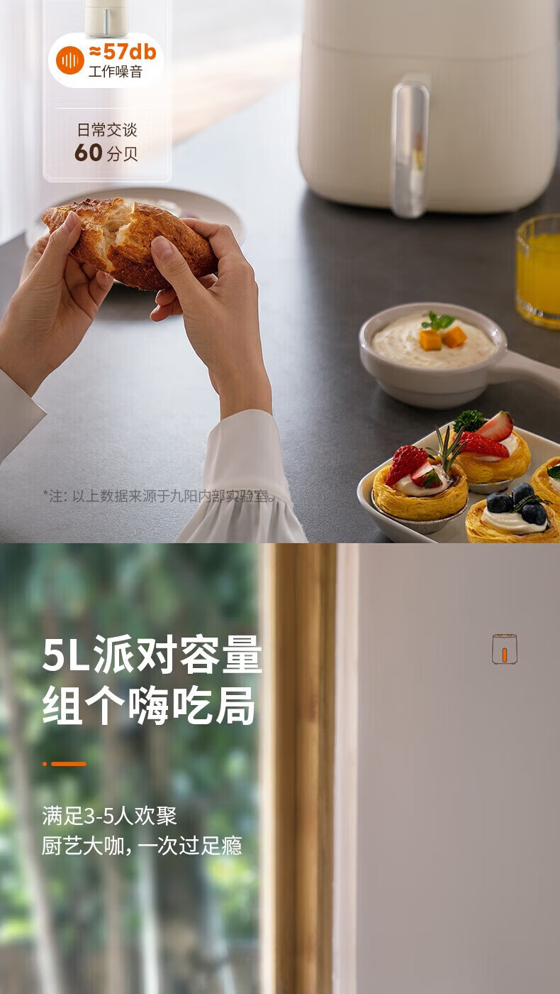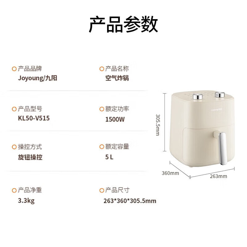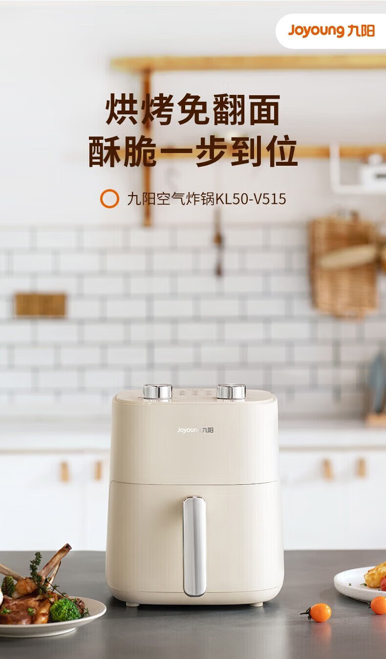 代发九阳(Joyoung)不用翻面 聚能寰顶 高效烘烤 蒸汽嫩炸空气炸锅 家用5L大容量 薯条机电炸锅 KL50-V515