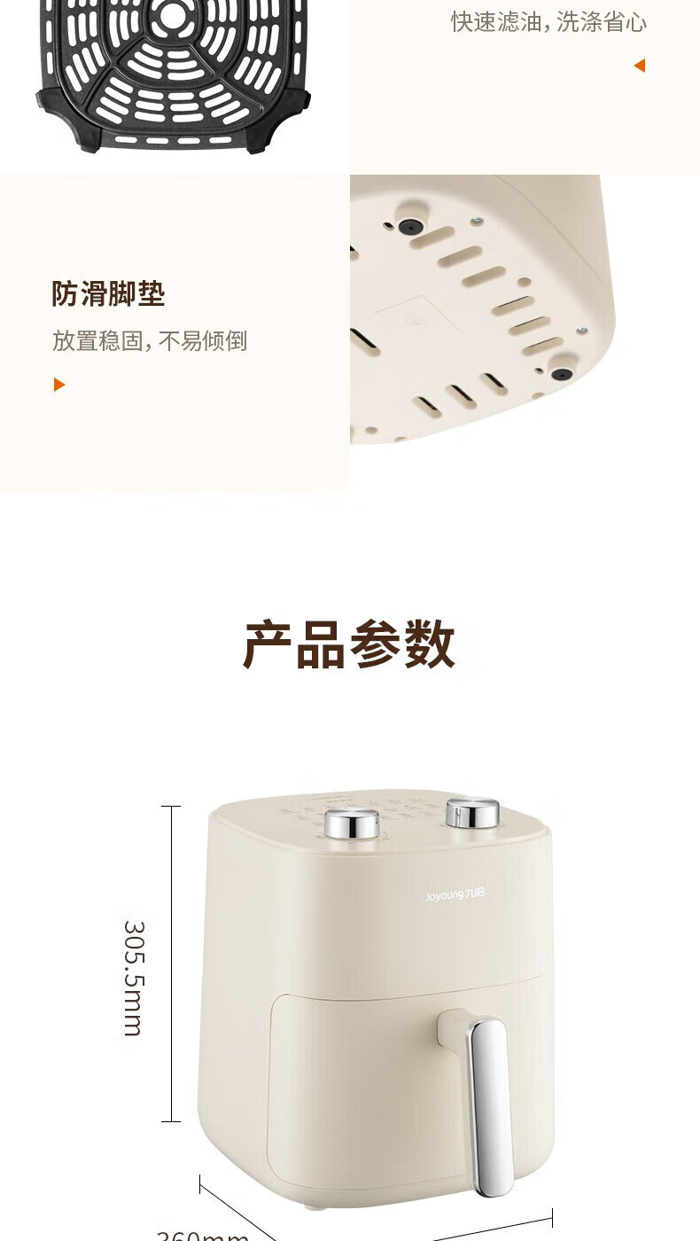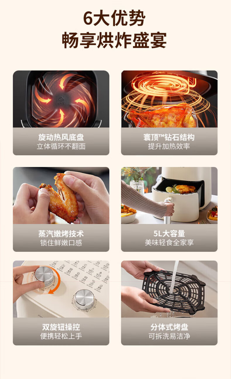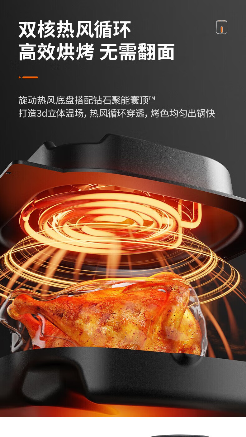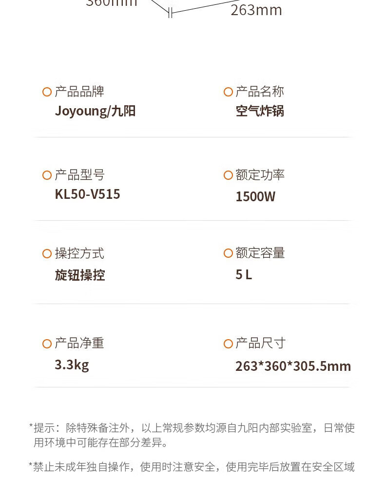 代发九阳(Joyoung)不用翻面 聚能寰顶 高效烘烤 蒸汽嫩炸空气炸锅 家用5L大容量 薯条机电炸锅 KL50-V515
