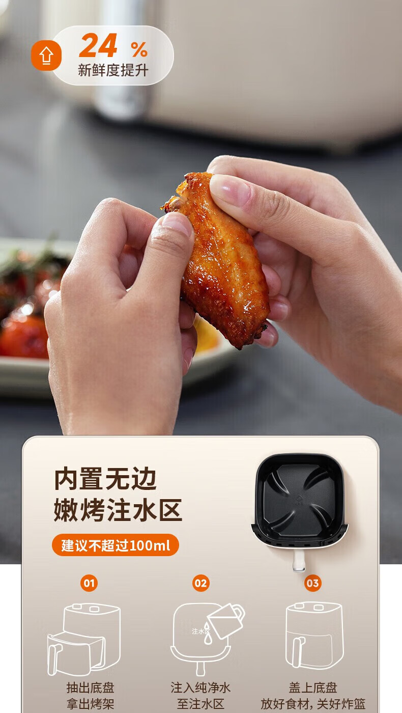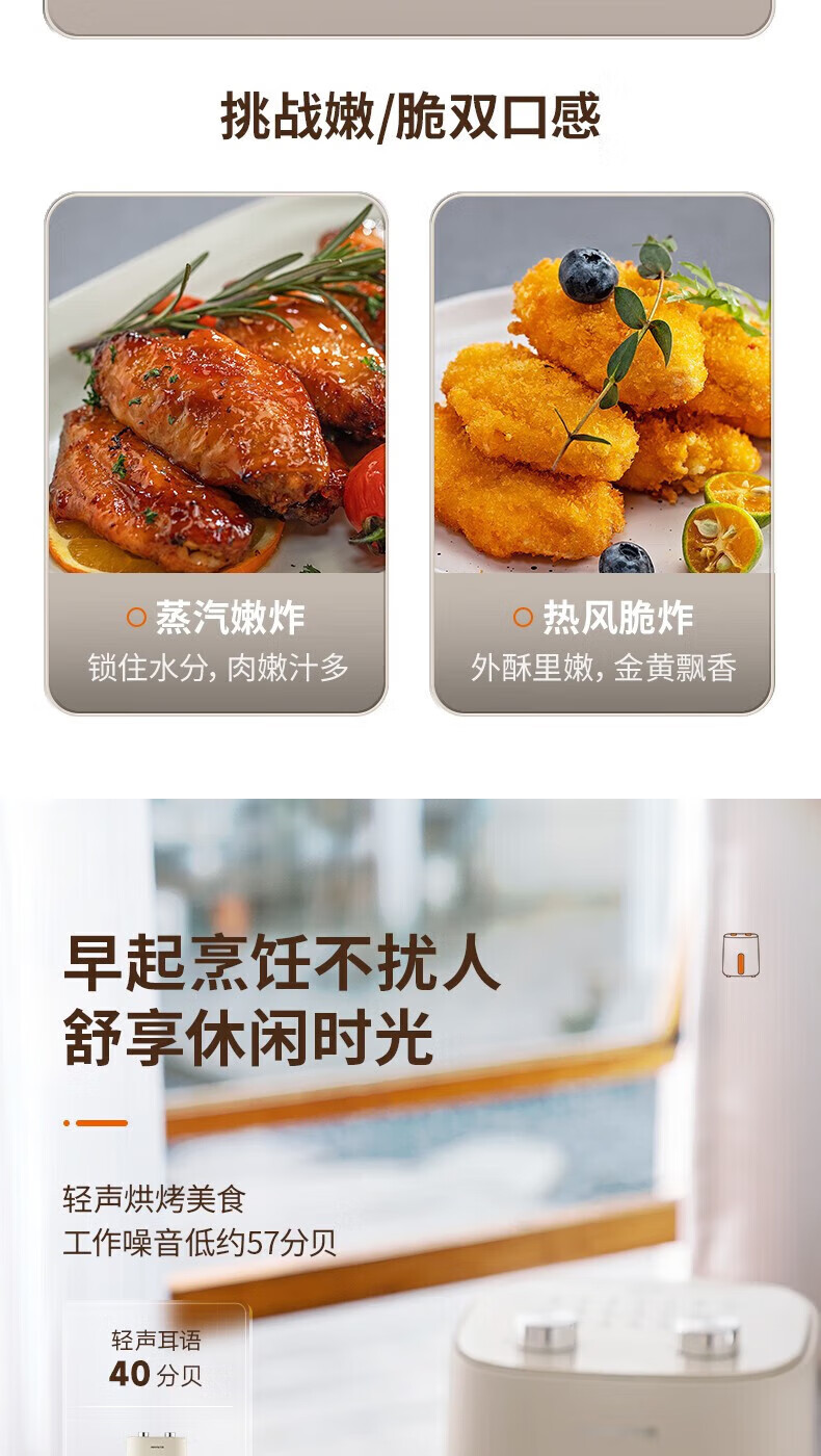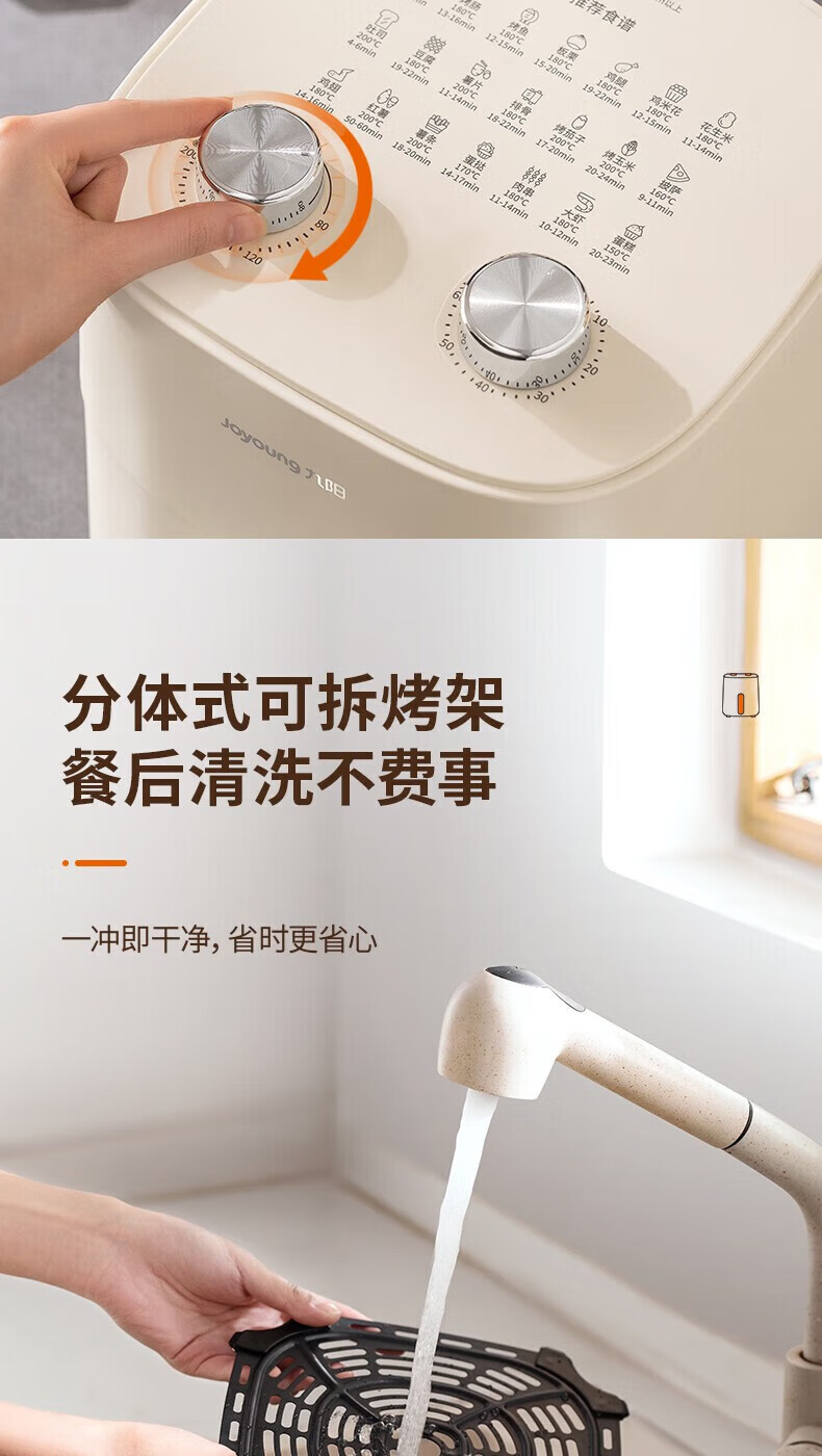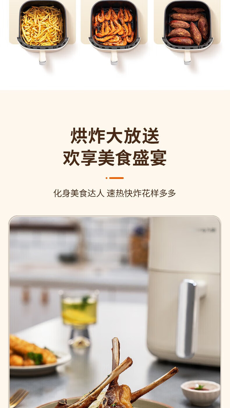 代发九阳(Joyoung)不用翻面 聚能寰顶 高效烘烤 蒸汽嫩炸空气炸锅 家用5L大容量 薯条机电炸锅 KL50-V515