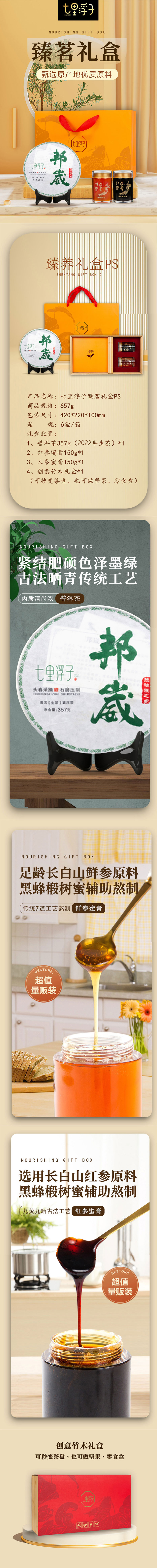 荐代发七里浮子臻茗礼盒PS657g【2022普洱生茶/红参蜜膏/鲜参蜜膏】