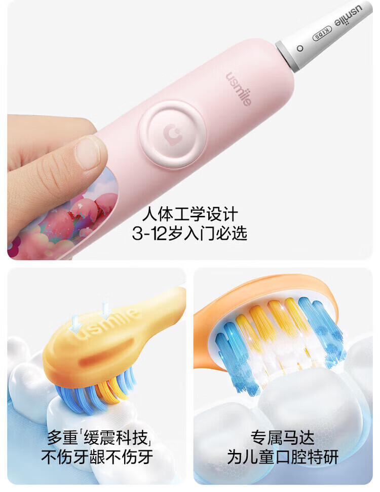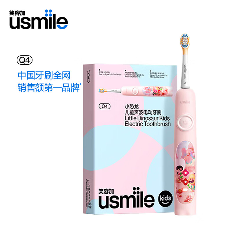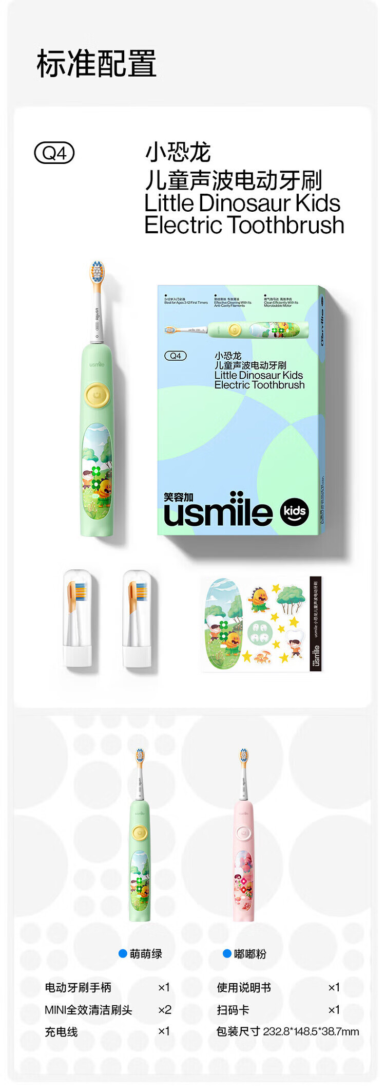 代发usmile 笑容加 儿童电动牙刷声波震动防蛀抗龋 3-6-12岁 Q4小恐龙