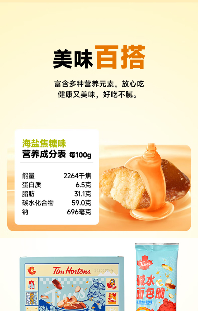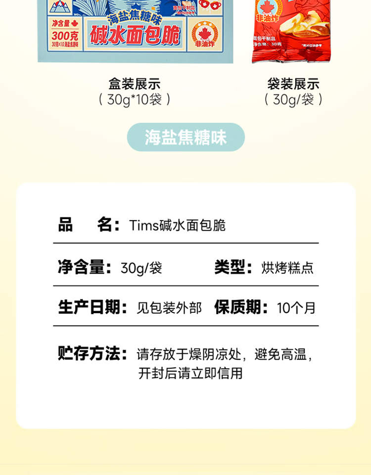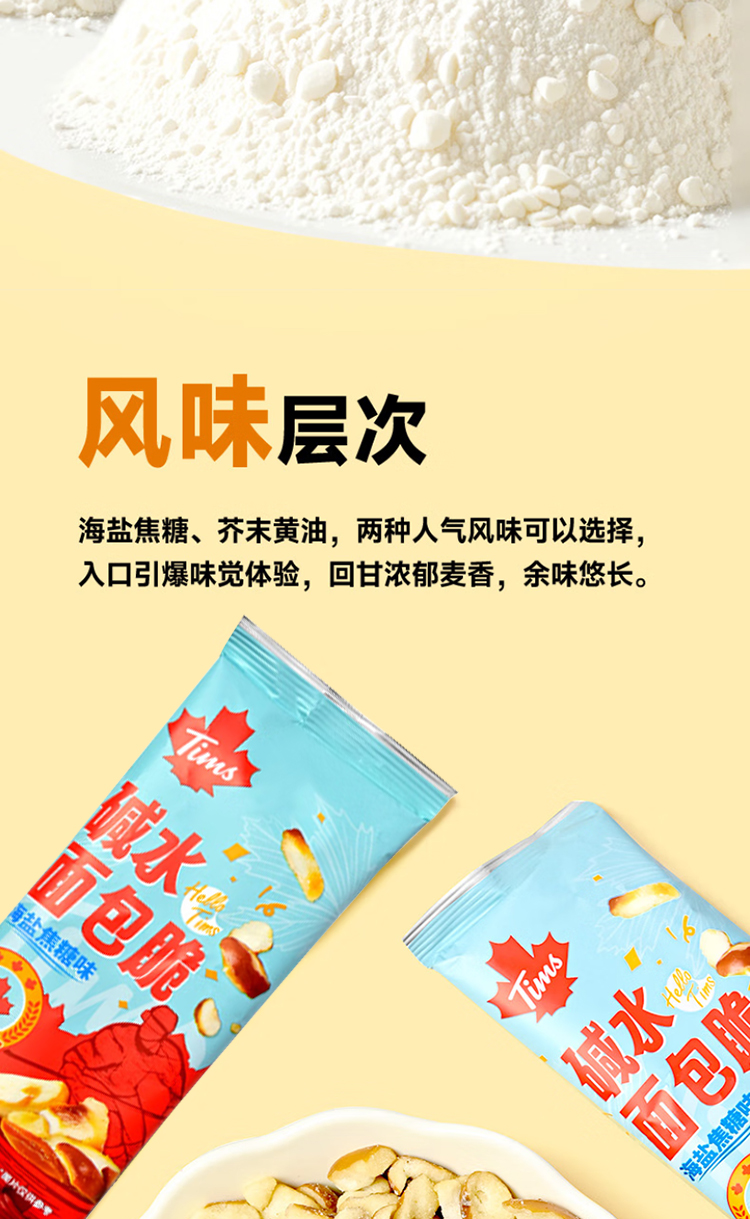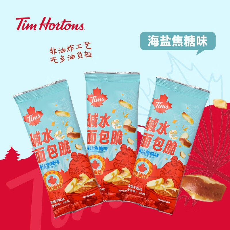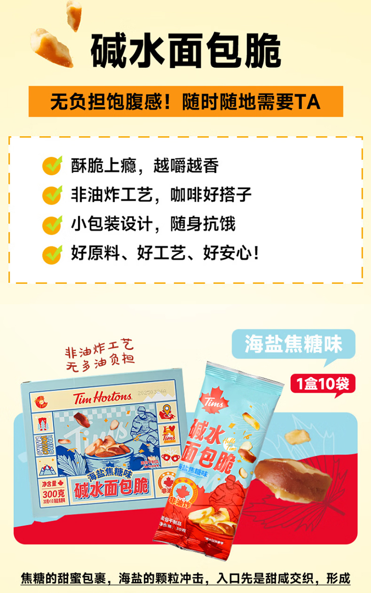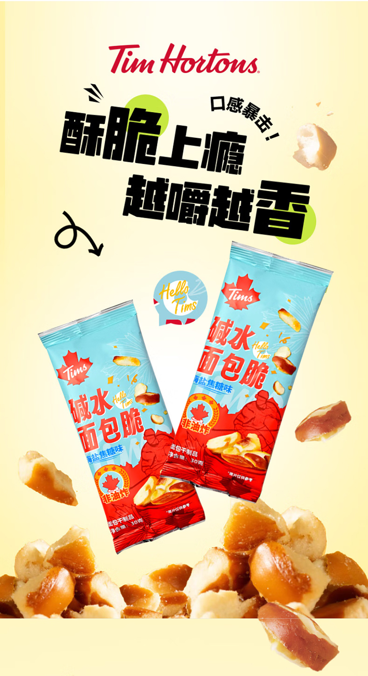 代发自营Tim Hortons Tims天好咖啡休闲零食碱水面包脆30g*10袋海盐焦糖味/芥末黄油味