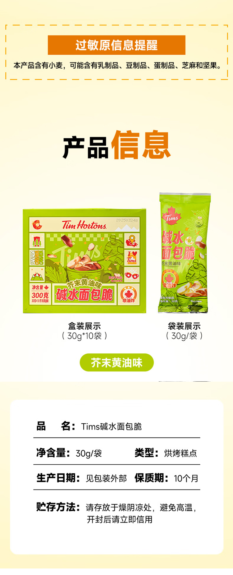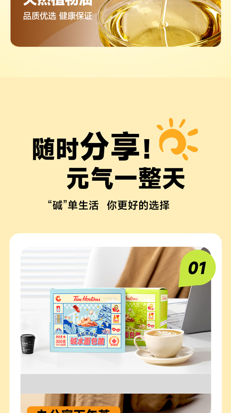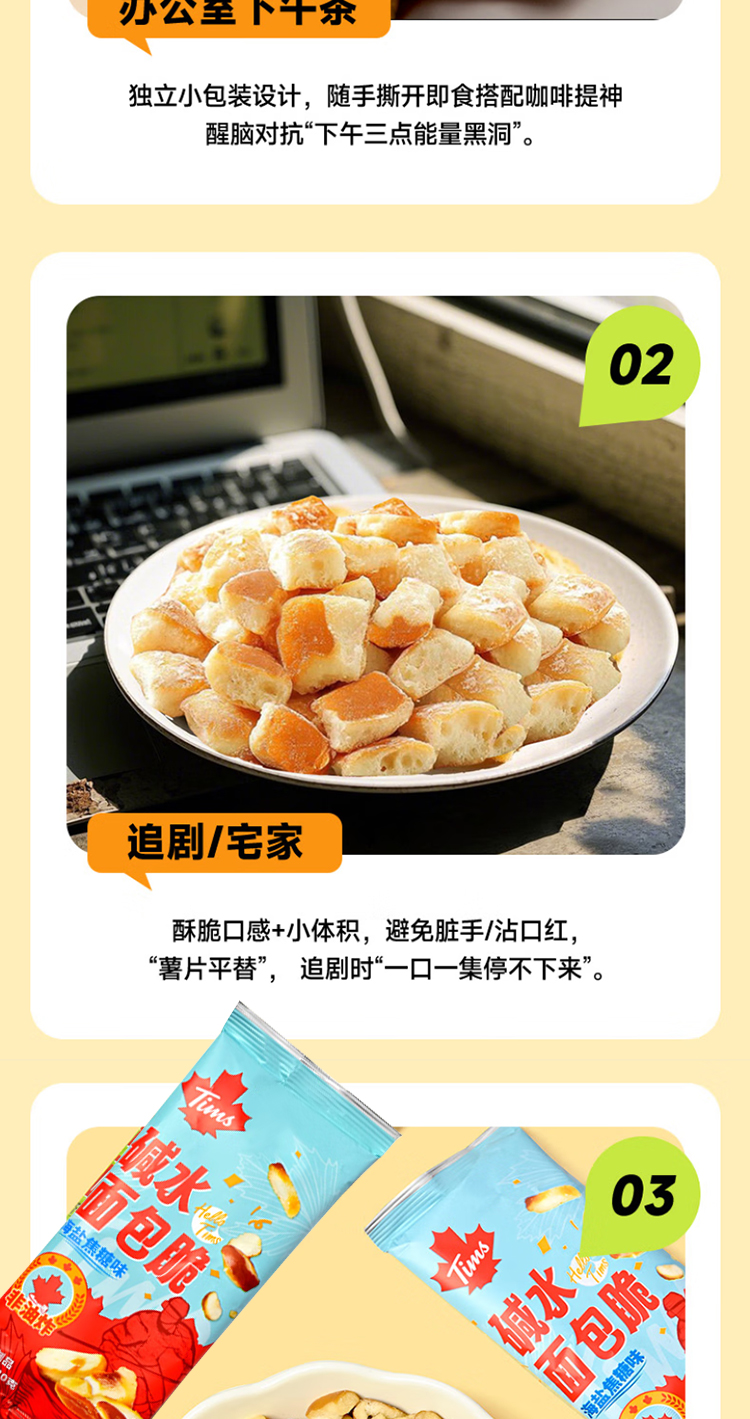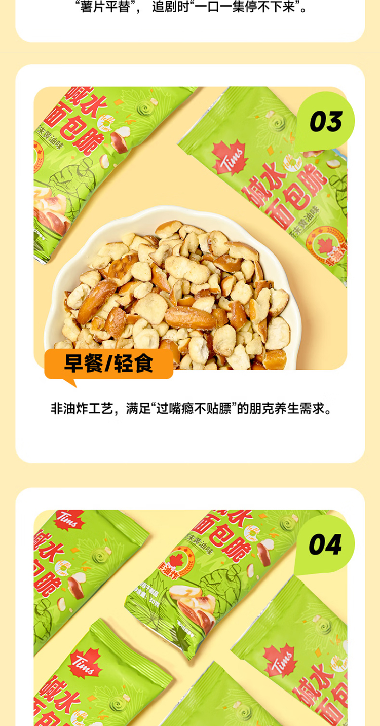 代发自营Tim Hortons Tims天好咖啡休闲零食碱水面包脆30g*10袋海盐焦糖味/芥末黄油味