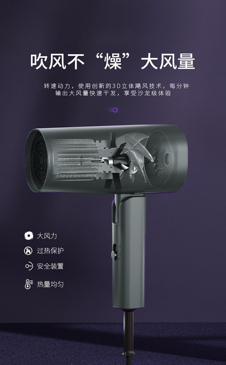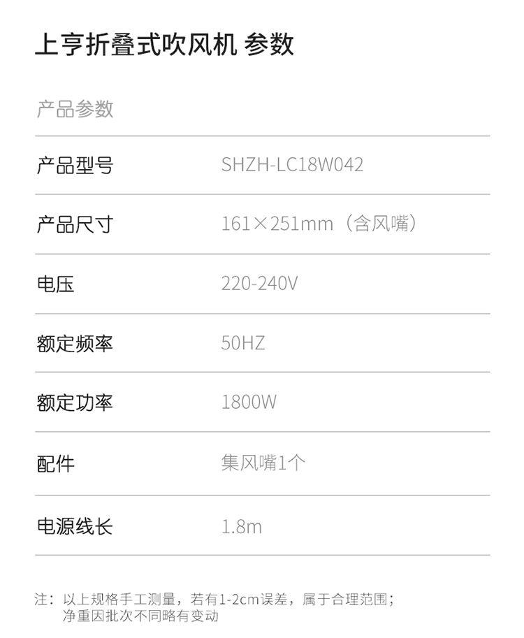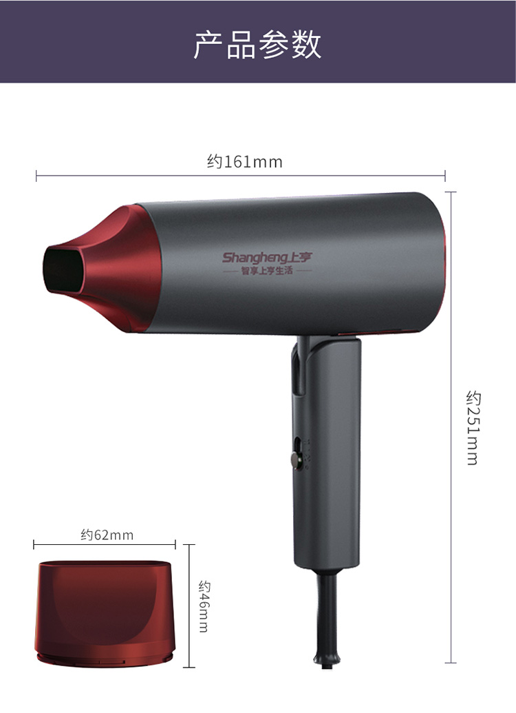 代发上亨可折叠电吹风SHZH-LC18W042灰红色