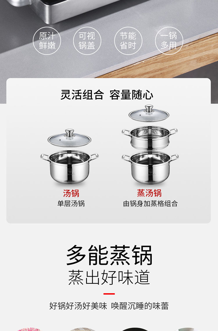 荐代发上亨不锈钢蒸汤锅SHZH-BXG002-24cm