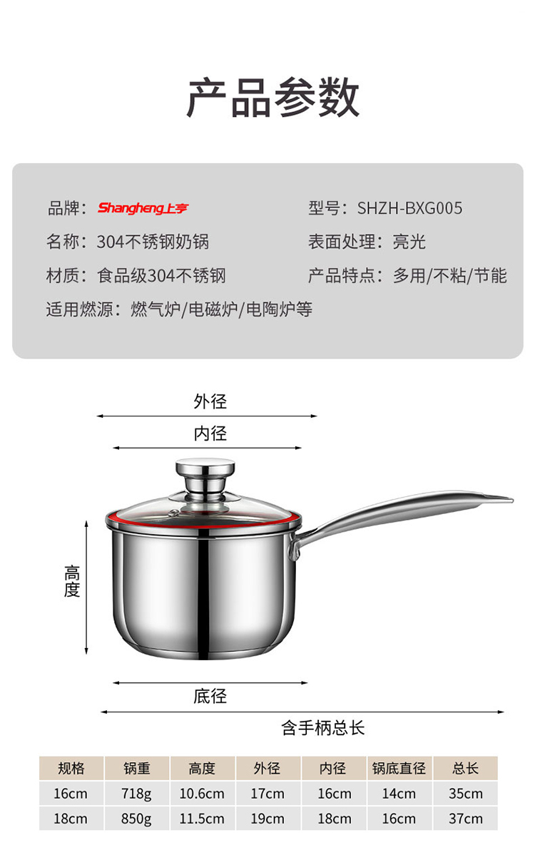 代发上亨不锈钢奶锅SHZH-BXG005-16cm