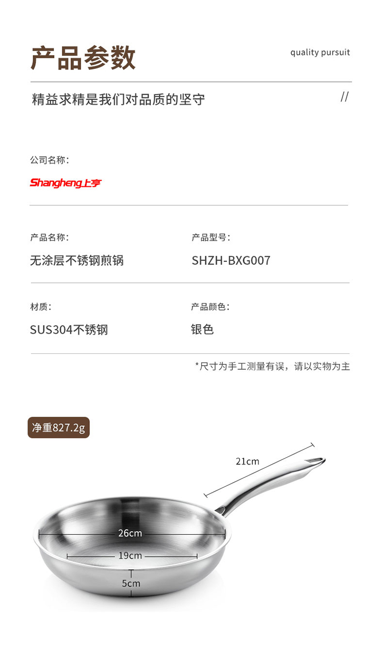 代发上亨不锈钢煎锅SHZH-BXG007-26cm