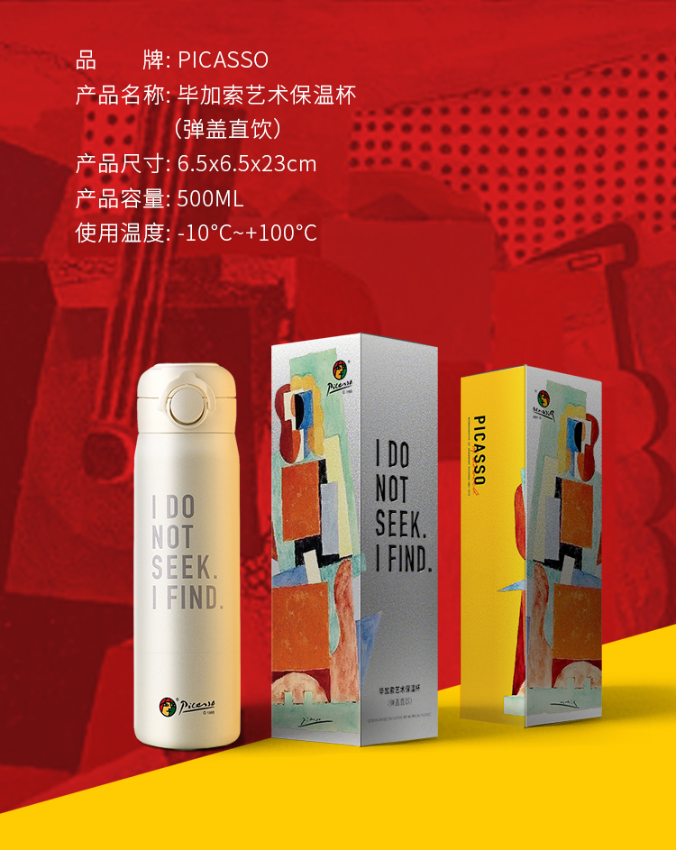源头毕加索艺术保温杯PS-2501花色四选一让艺术融入生活