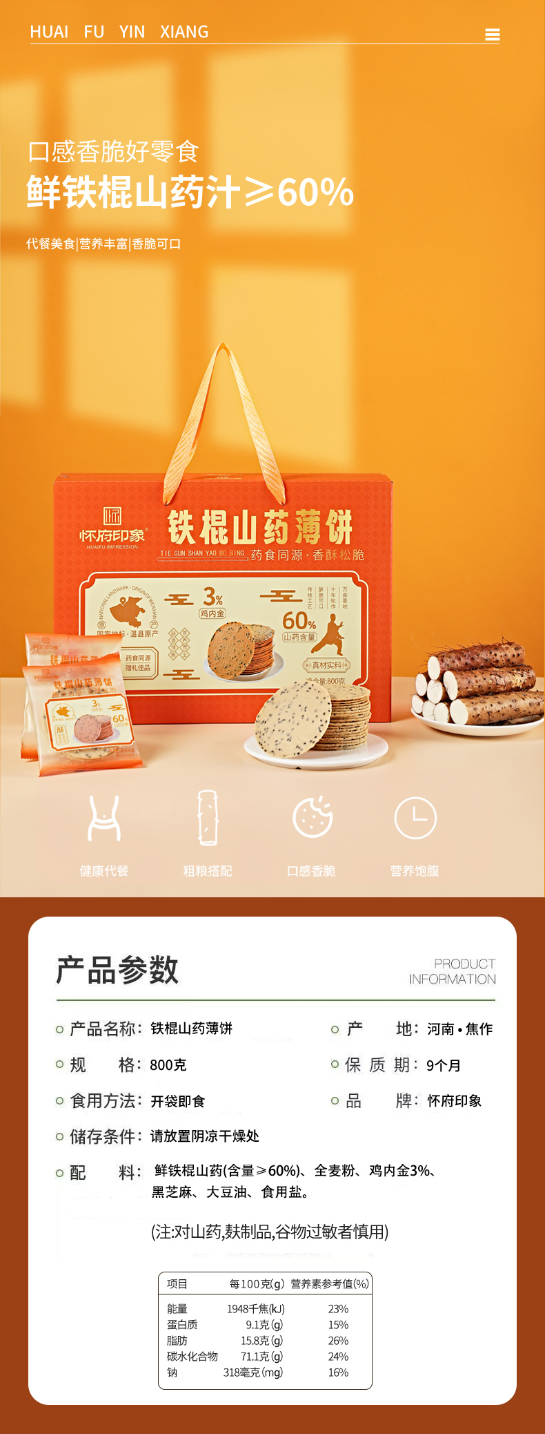 代发怀府印象800g铁棍山药薄饼