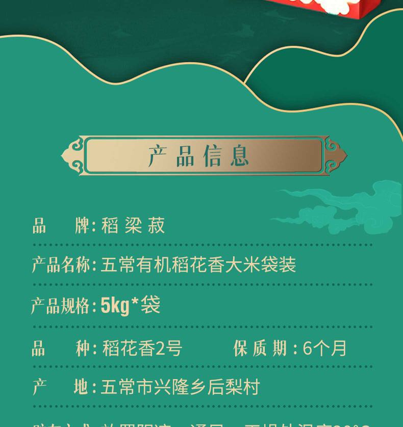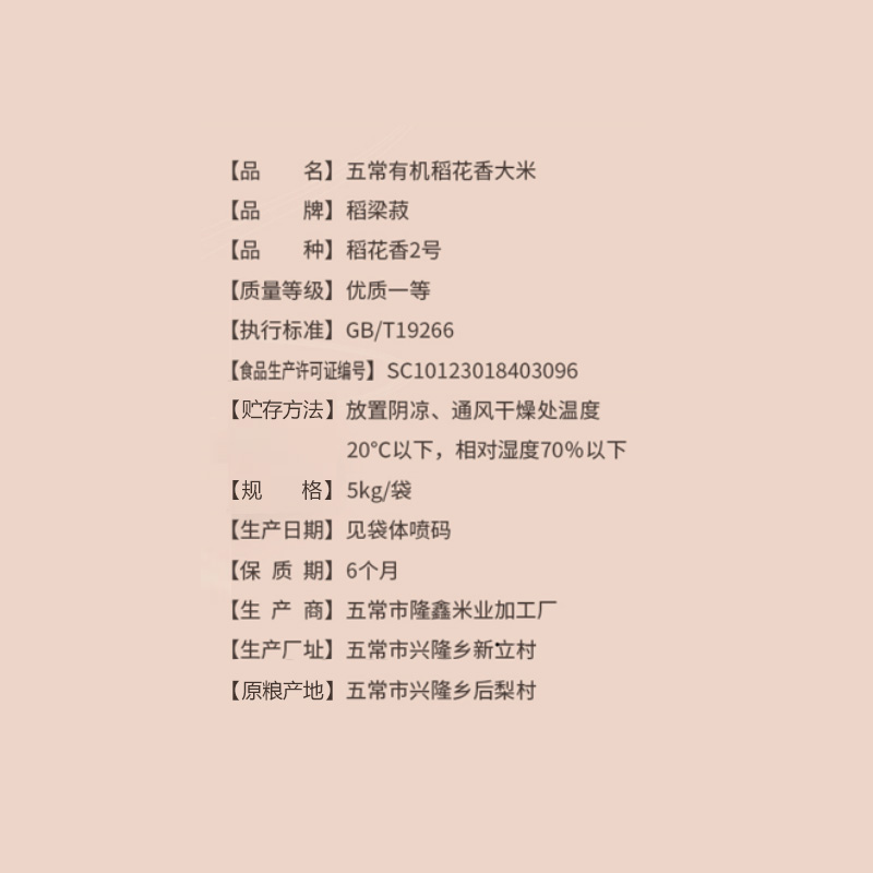 荐代发稻梁菽 五常稻花香大米有机红色款5kg