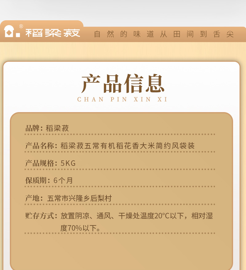 代发稻梁菽 五常稻花香大米 有机简约风款5kg