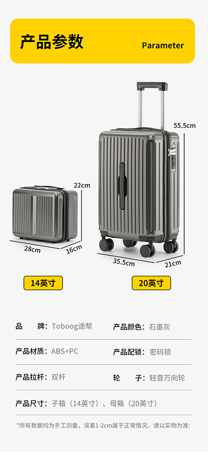 代发途帮(TOBOOG)商务可登机子母行李箱2103 14寸+20寸