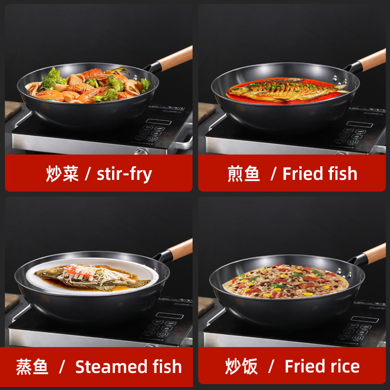 代发美穗吉家 氮化精铁无涂层炒锅30cm(带锅盖)型号:MIH-2501021