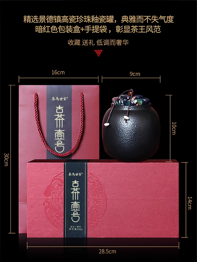 代发自营茶马世家古茶一号普洱熟茶高端陶罐礼盒200g(100g*2罐)