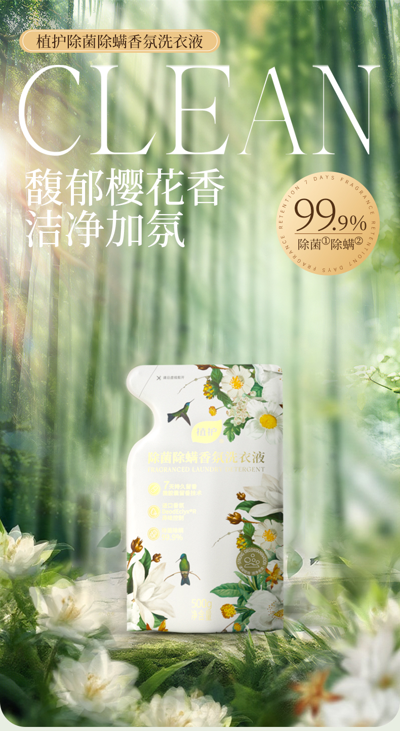 荐代发植护 除菌除螨香氛洗衣液(樱花香型) 500g*1袋ZH408765*1