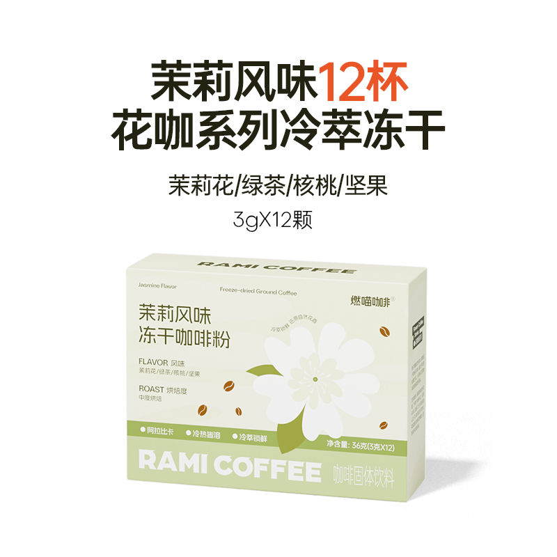 代发燃喵美式咖啡小罐 36g/盒 12颗咖啡粉甘醇冻干速溶运动三秒冷萃花咖啡 12颗 茉莉风味
