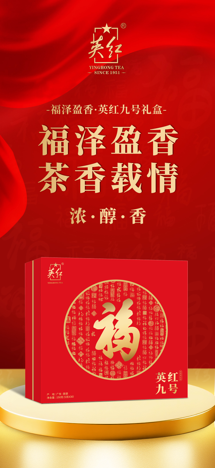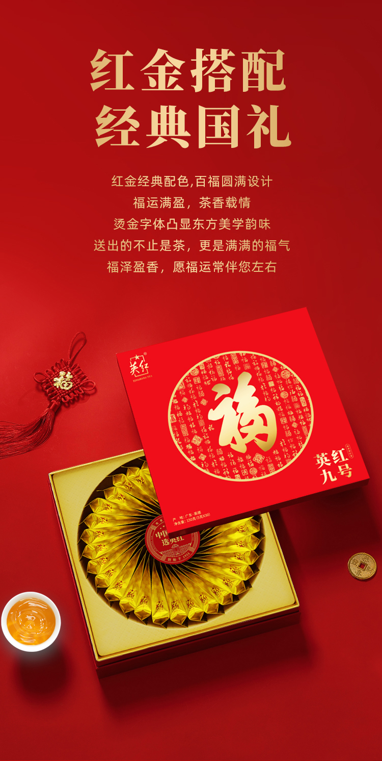 代发英红牌英红九号红茶浓香型有机茶高档茶礼茶叶礼盒年货节礼品送礼 英红九号.福泽盈香礼盒【150g】