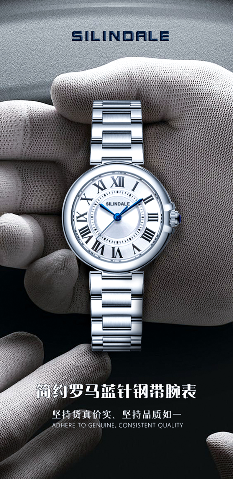 源头SILINDALE赛琳黛尔罗马蓝针钢带女腕表