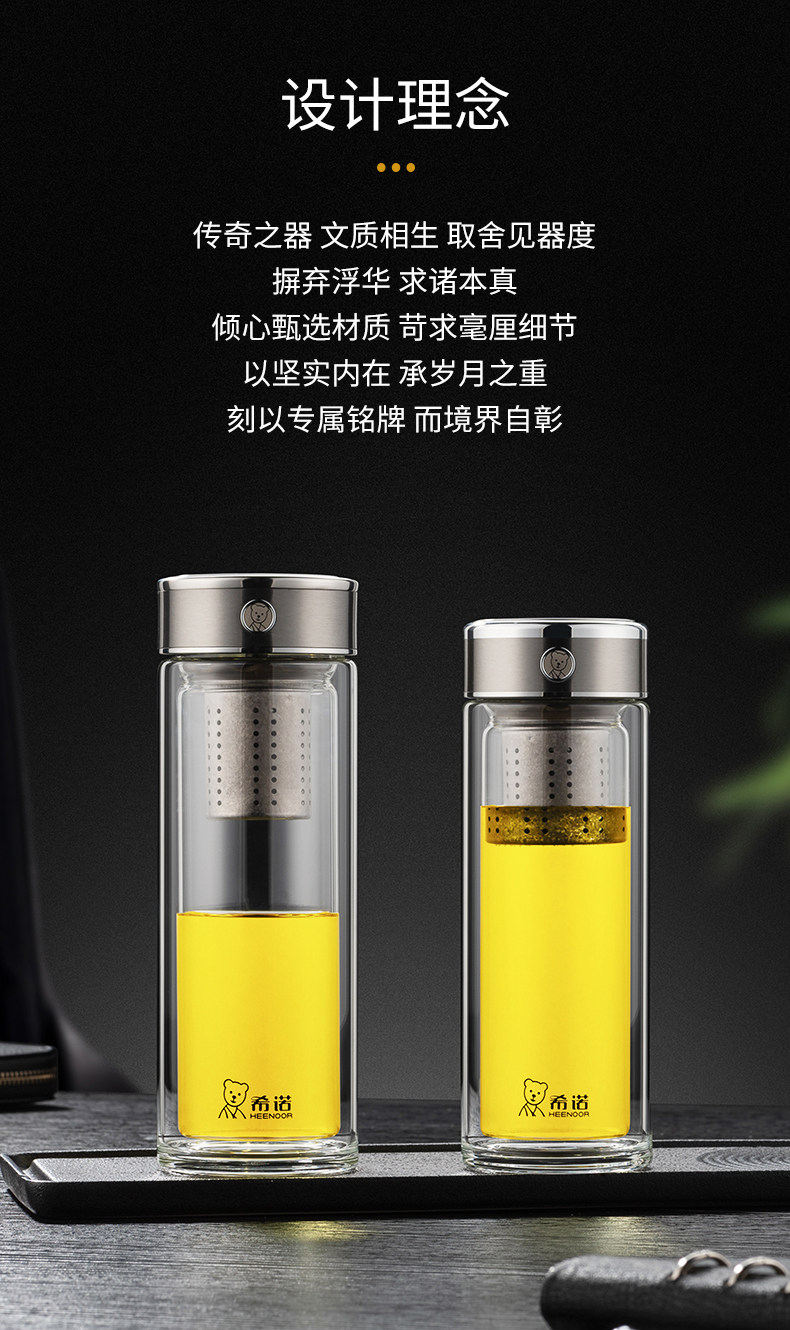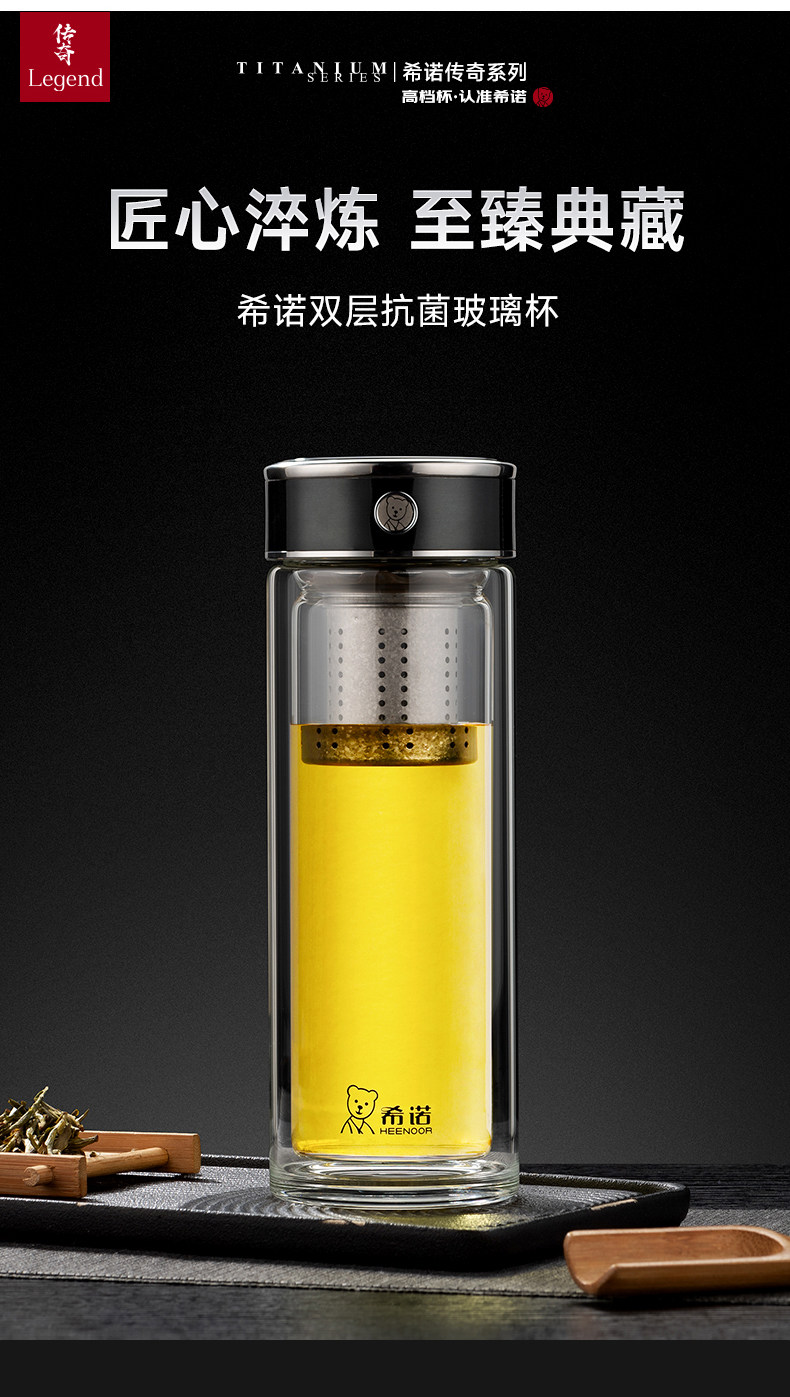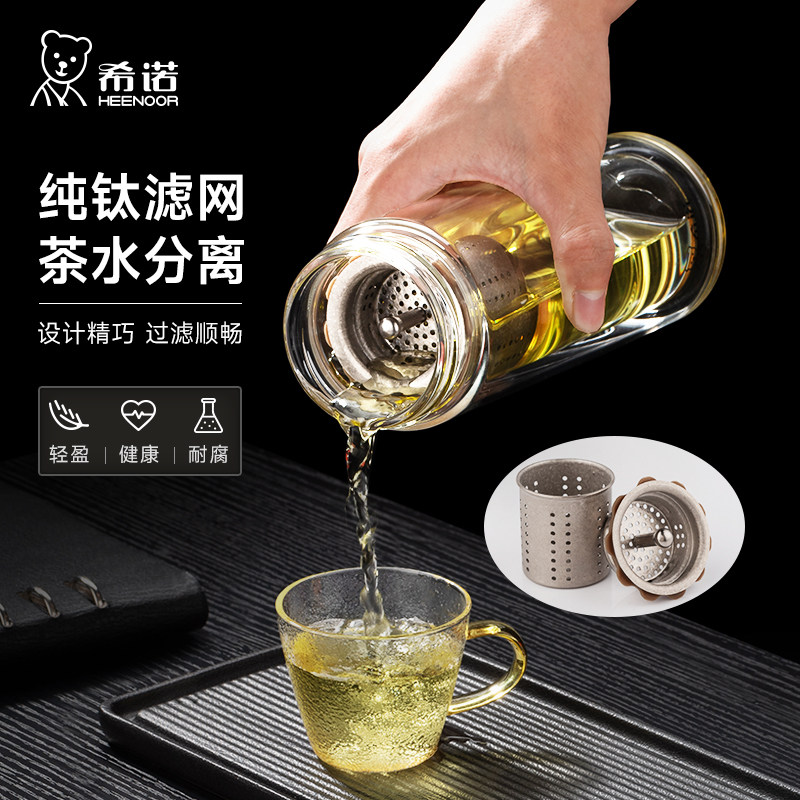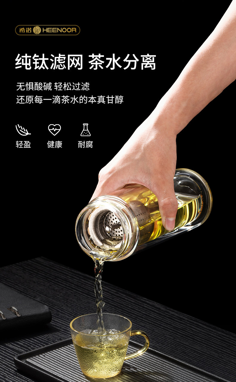 代发希诺(heenoor)双层抗菌玻璃杯男士茶水分离泡茶杯办公室大容量纯钛滤网高档水杯 【传奇系列】XN-608L