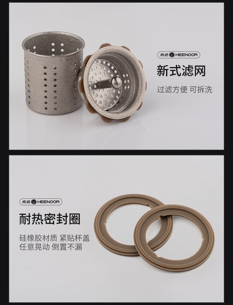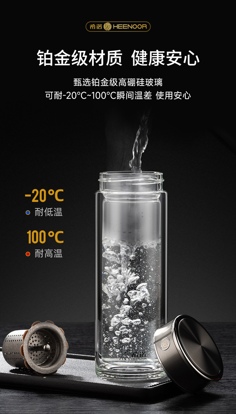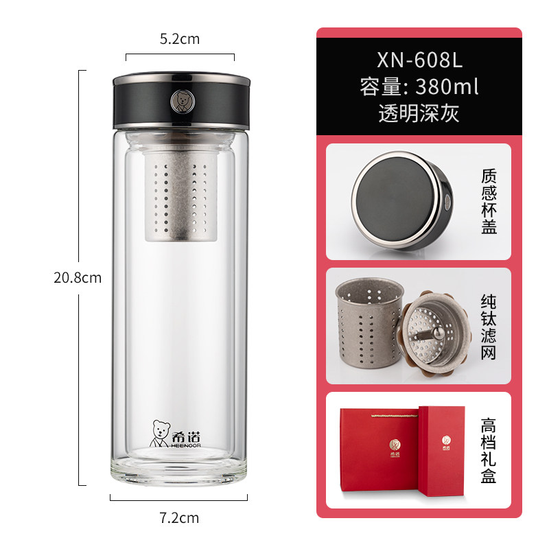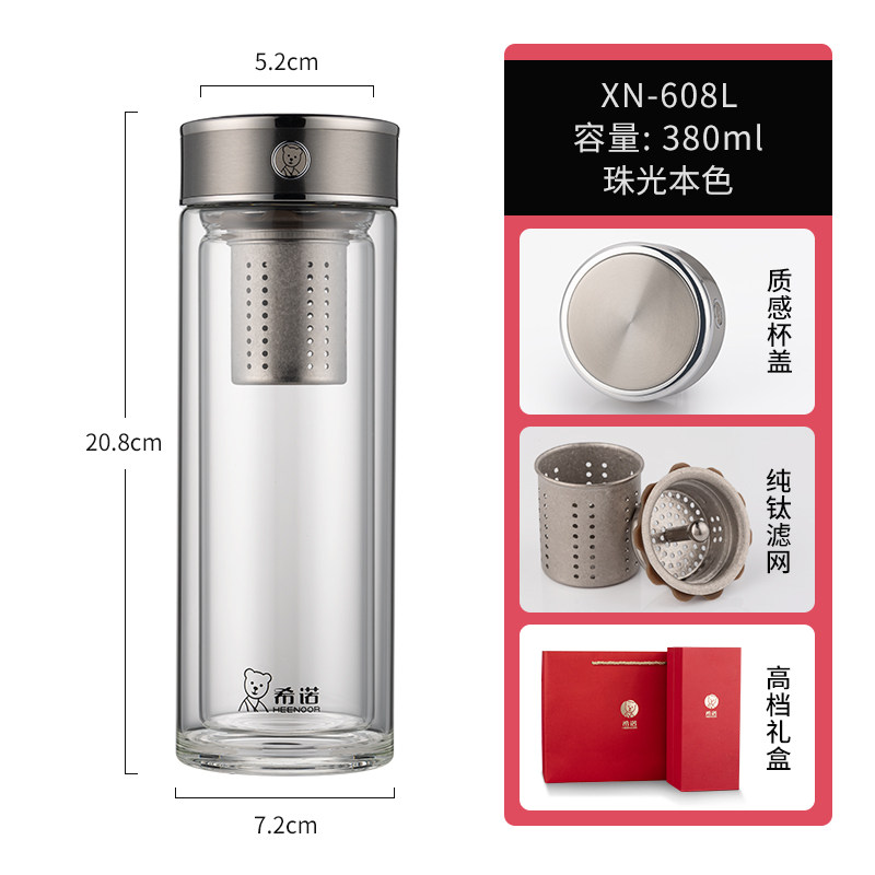 代发希诺(heenoor)双层抗菌玻璃杯男士茶水分离泡茶杯办公室大容量纯钛滤网高档水杯 【传奇系列】XN-608L