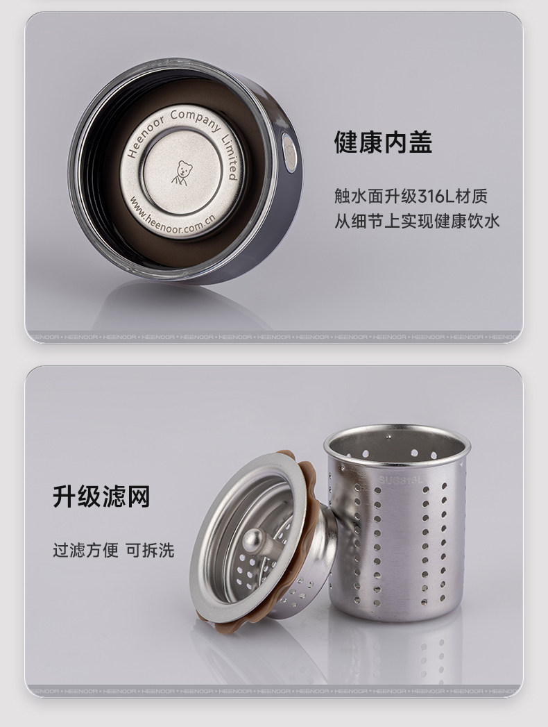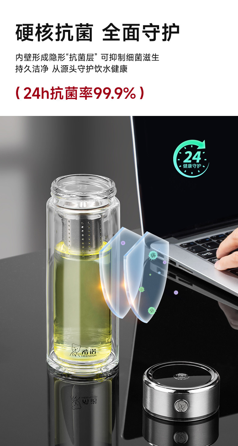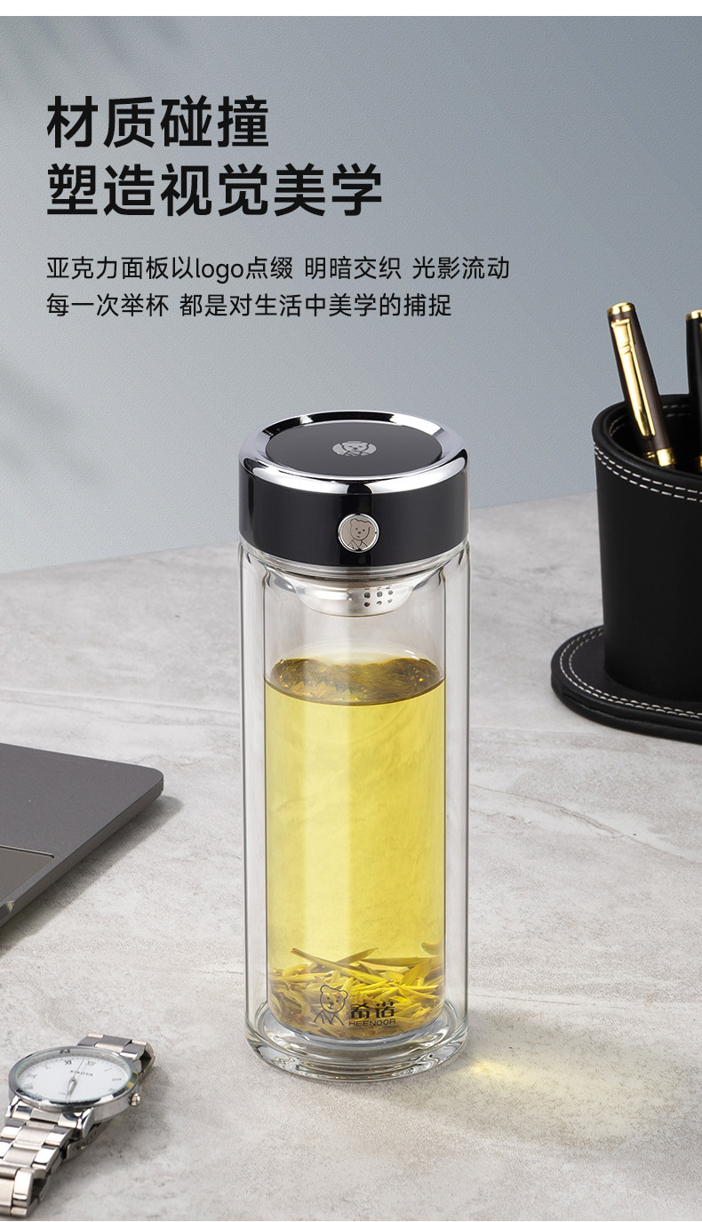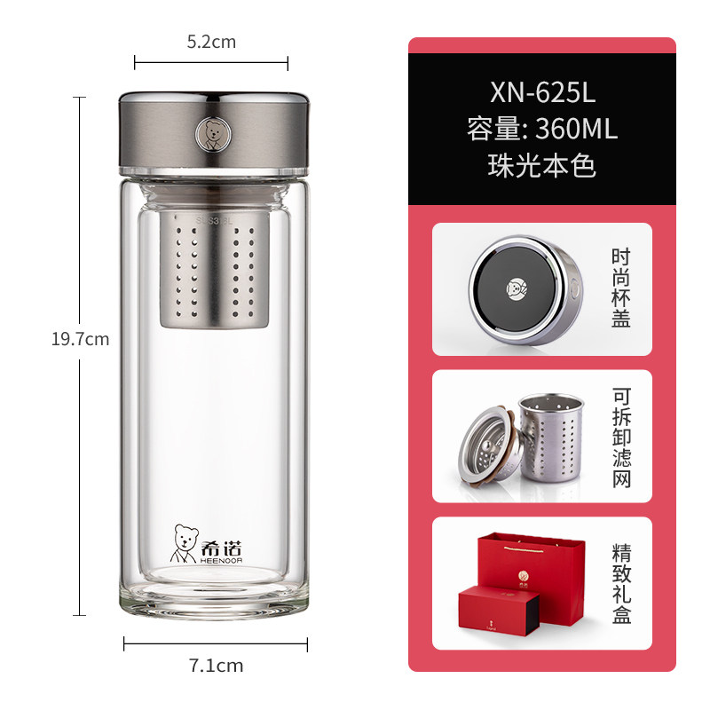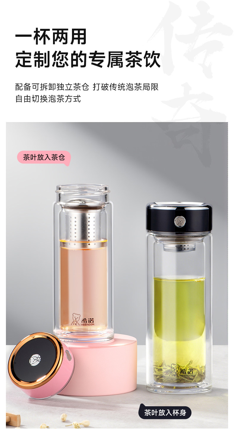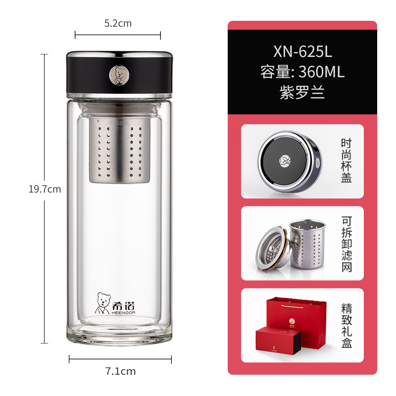 代发希诺(heenoor)双层玻璃杯男女士便携茶水分离抗菌杯高档透明泡茶杯办公室水杯 【传奇系列】XN-625L