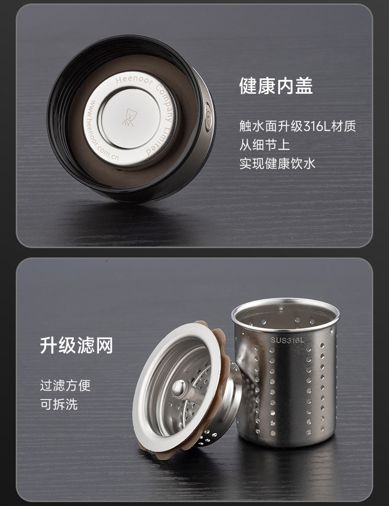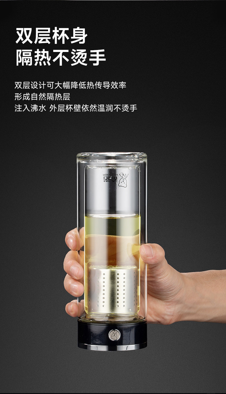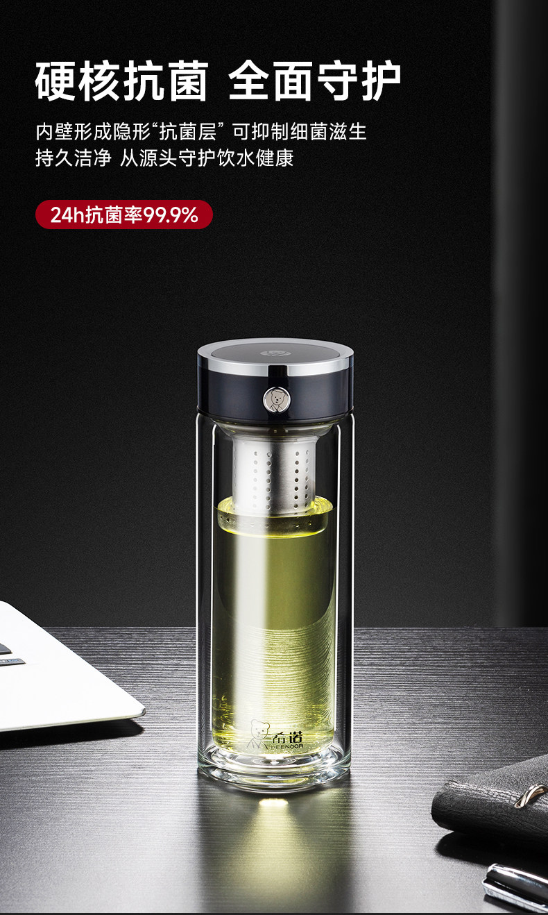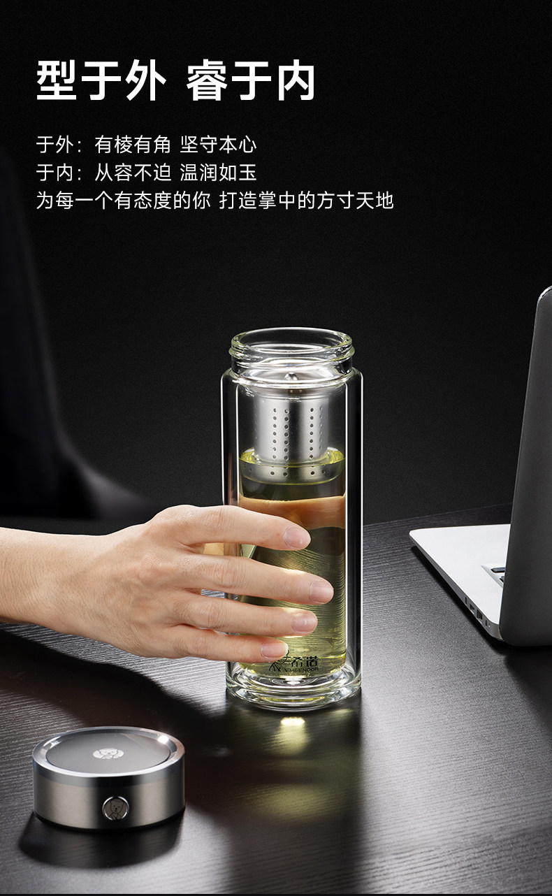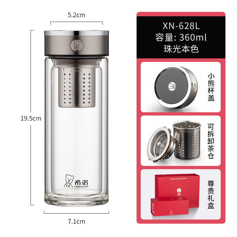 代发希诺(heenoor)双层抗菌玻璃杯男士茶水分离泡茶杯办公室水杯大容量透明杯子 【传奇系列】XN-627L