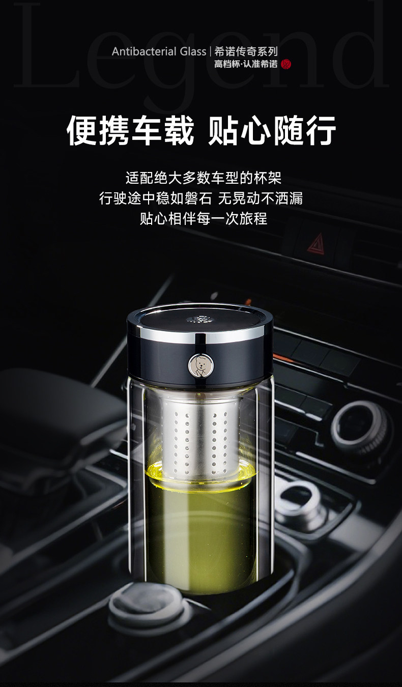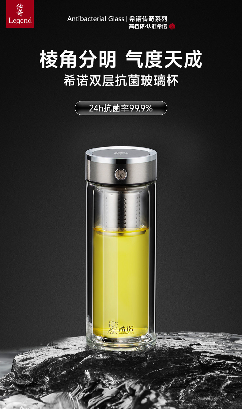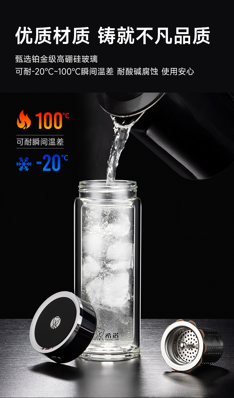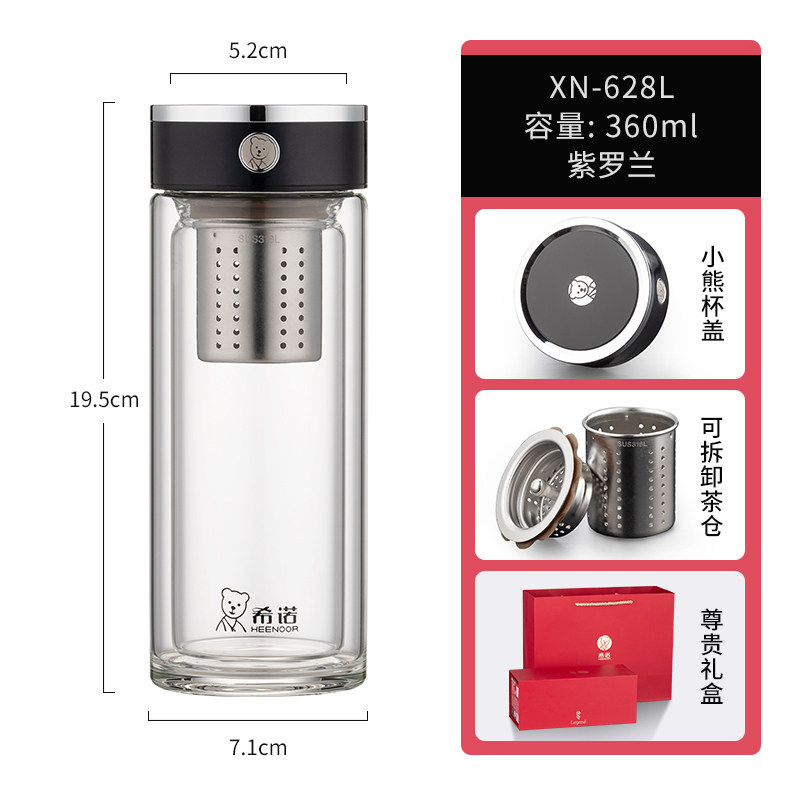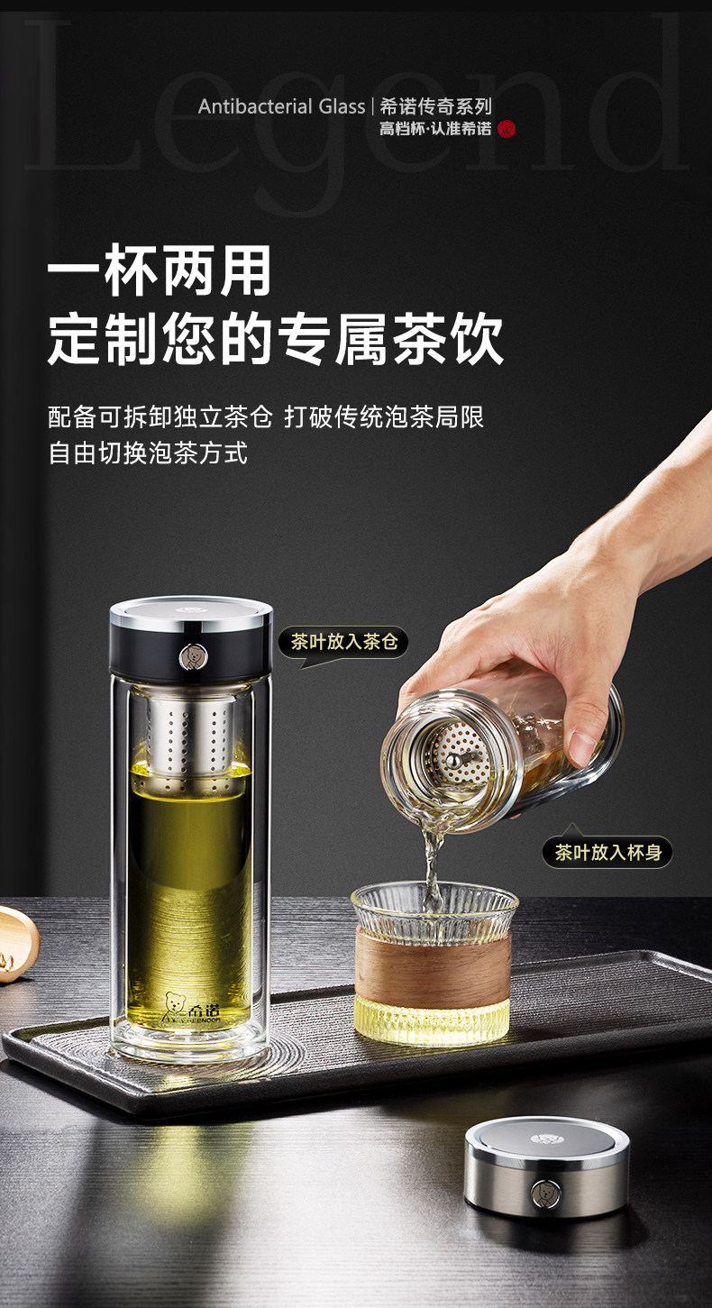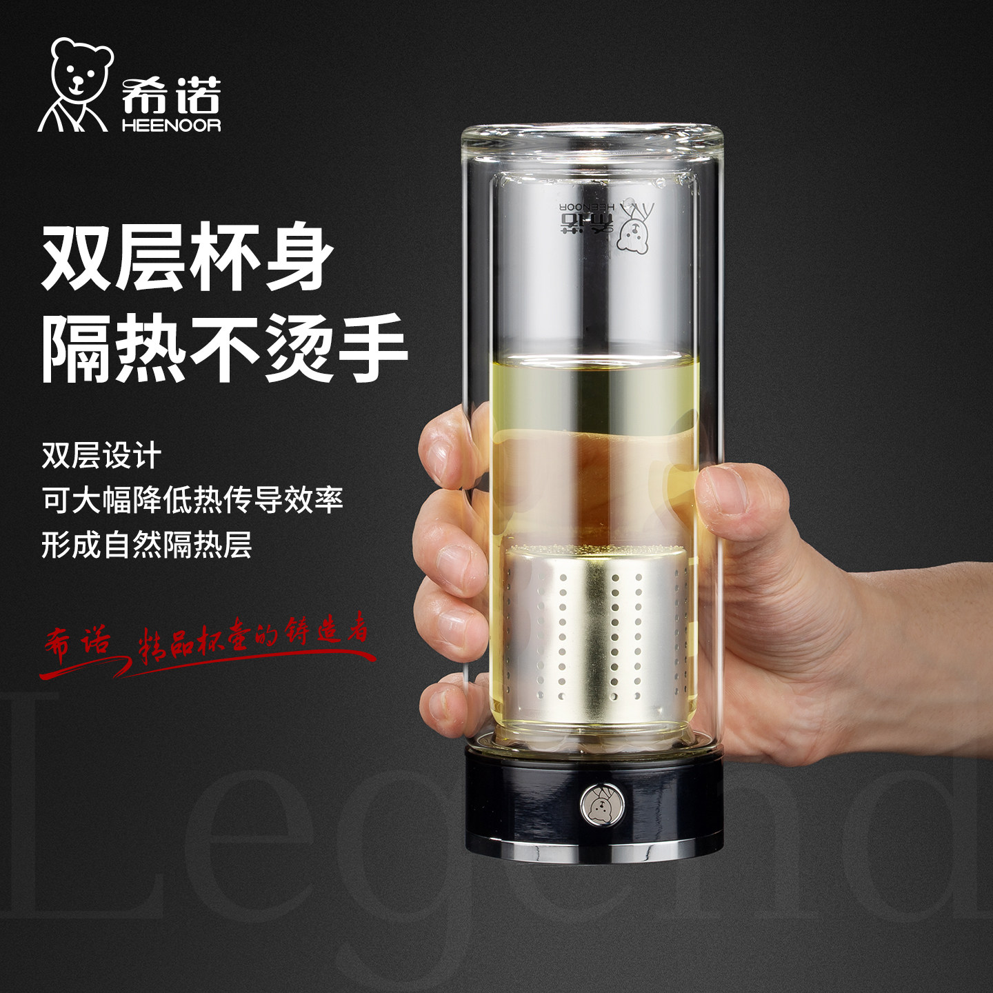 代发希诺(heenoor)双层抗菌玻璃杯男士茶水分离泡茶杯办公室水杯大容量透明杯子 【传奇系列】XN-628L