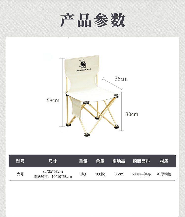 代发徽羚羊 云休 折叠椅 大号 卡其色HLY-ZDY-22055/米白色 HLY-ZDY-22056