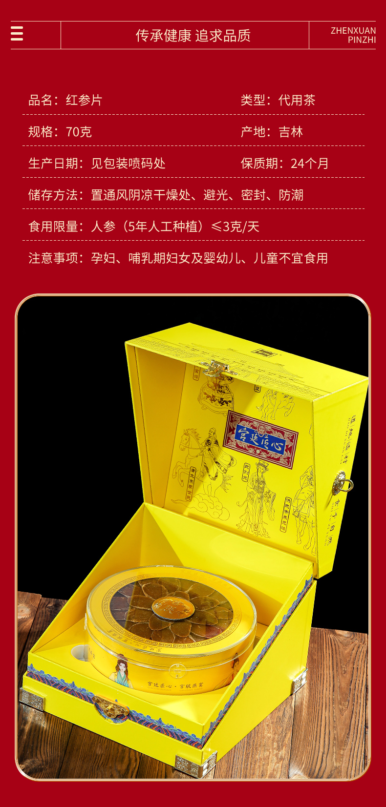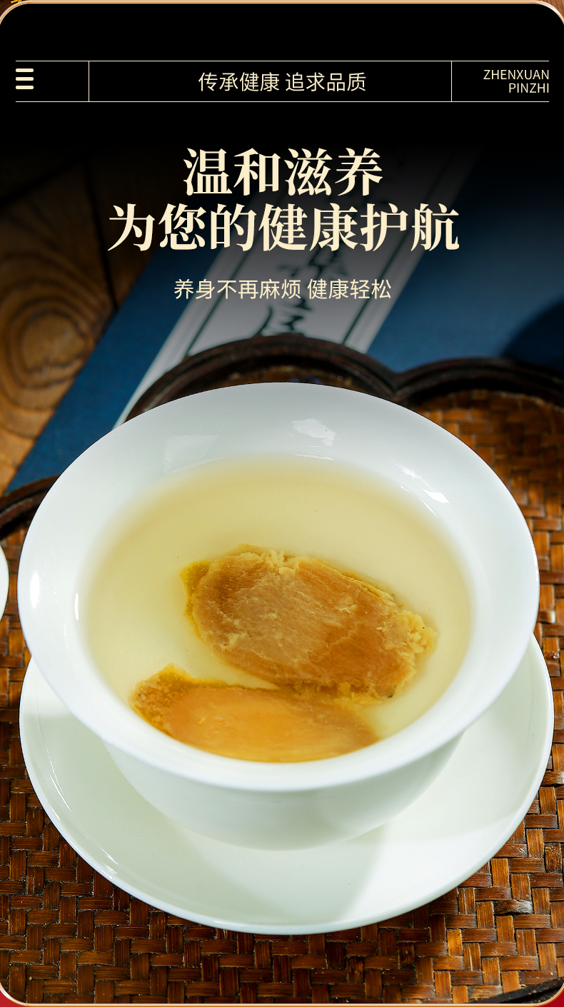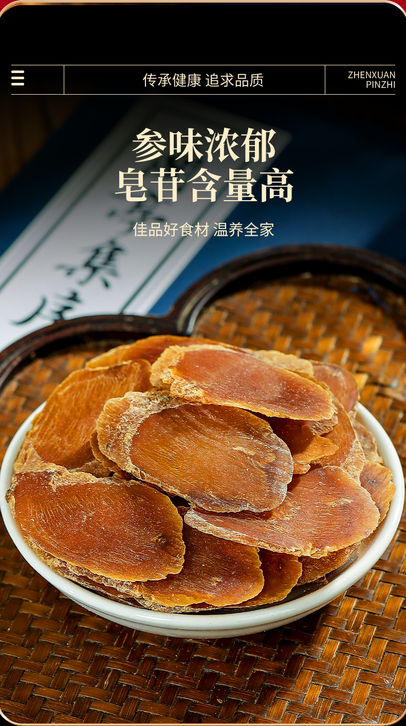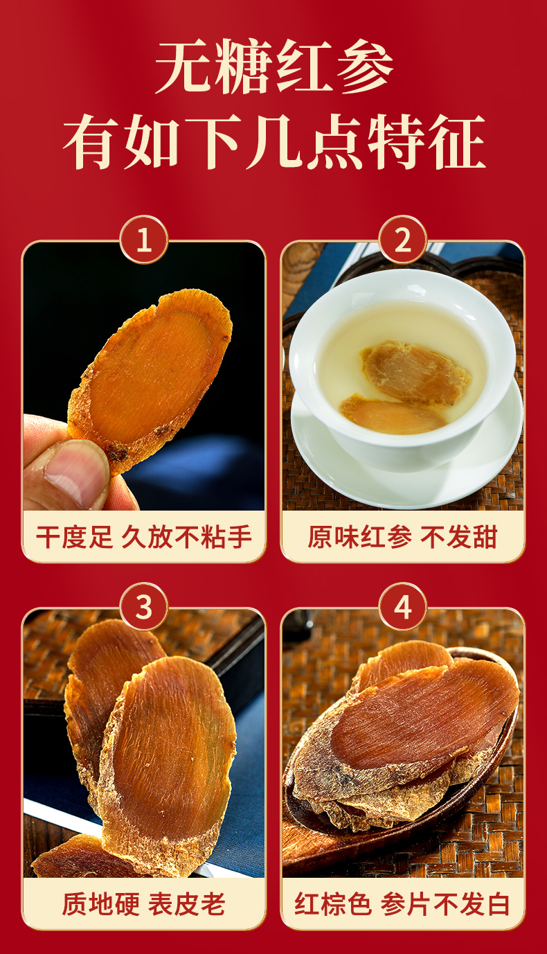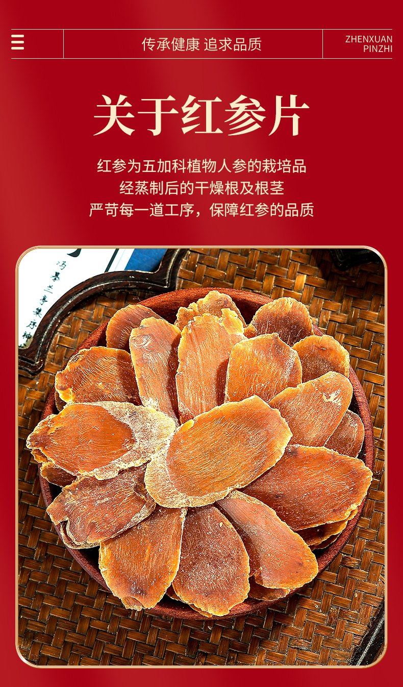 • 精致摆盘:红参片以花瓣造型摆盘,视觉精美,彰显品质。