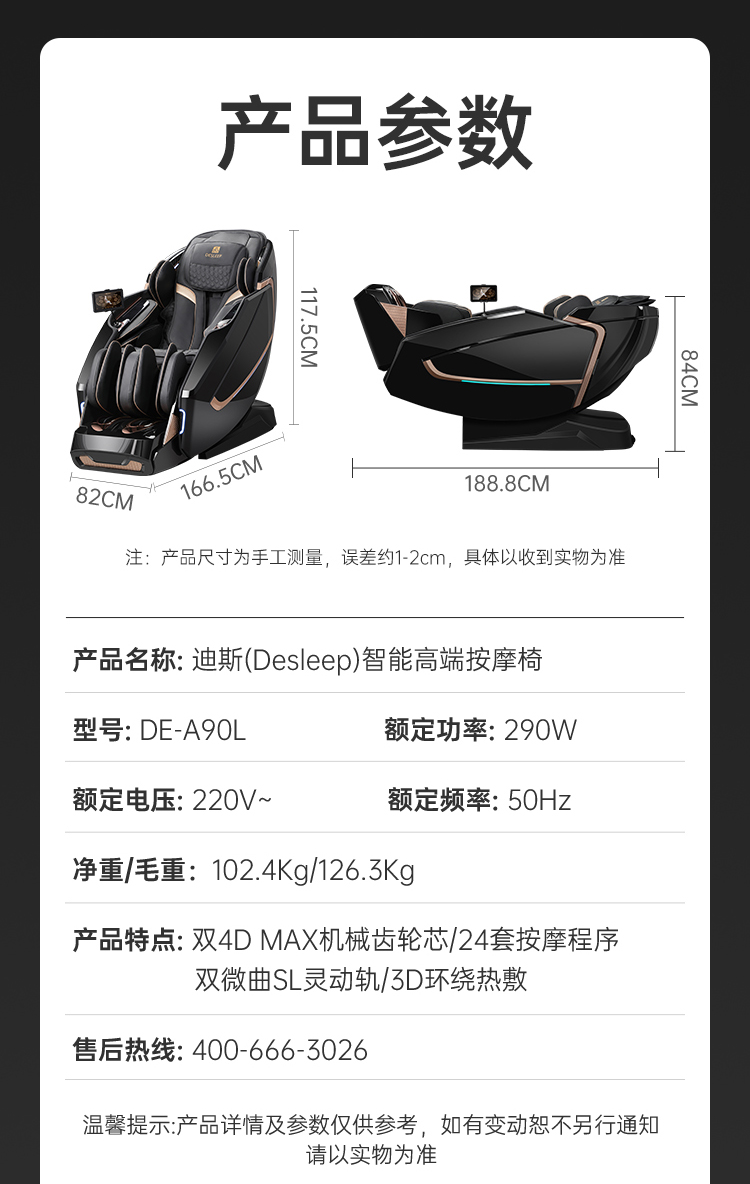 源头迪斯【豪华至尊款】4D双机芯按摩椅家用太空舱零重力全身电动按摩沙发送父母领导生日礼物推荐 DE-A90L曜石黑