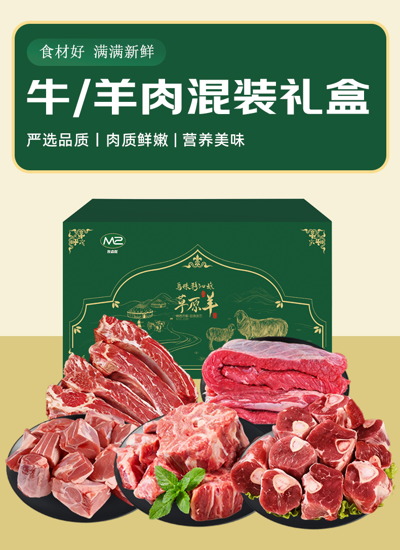 荐代发牧森甄 乌珠穆沁旗草原牛羊&大别山黑猪混装礼盒 2026版 578型