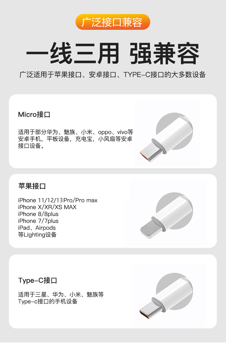 荐源头领臣 一拖三快充数据线 LC-568